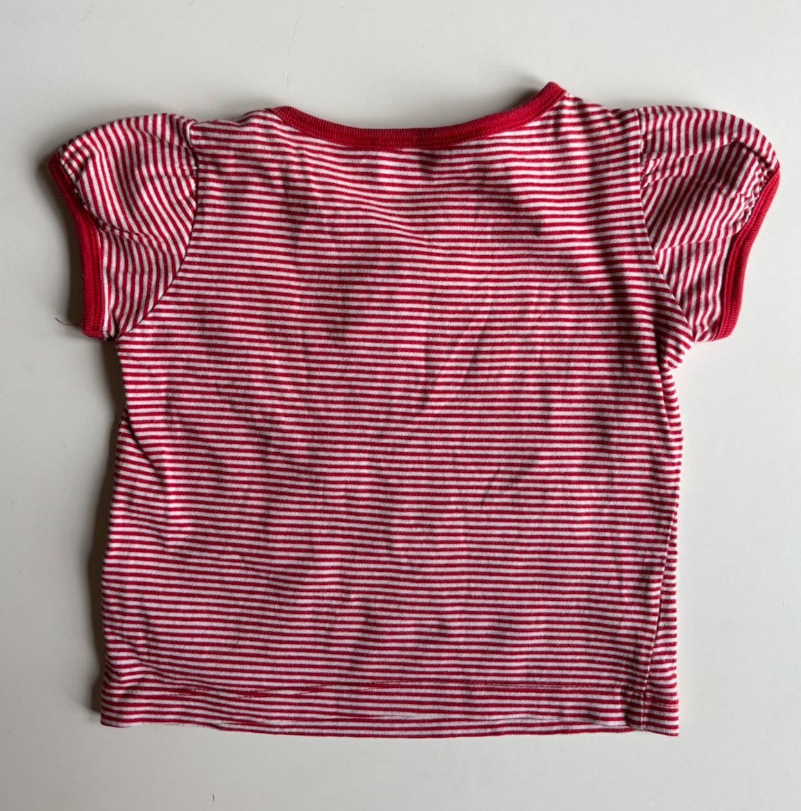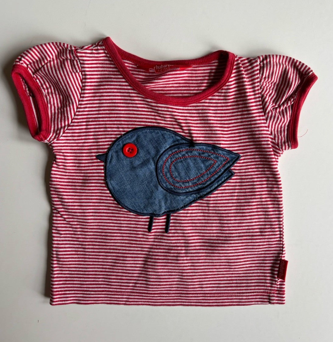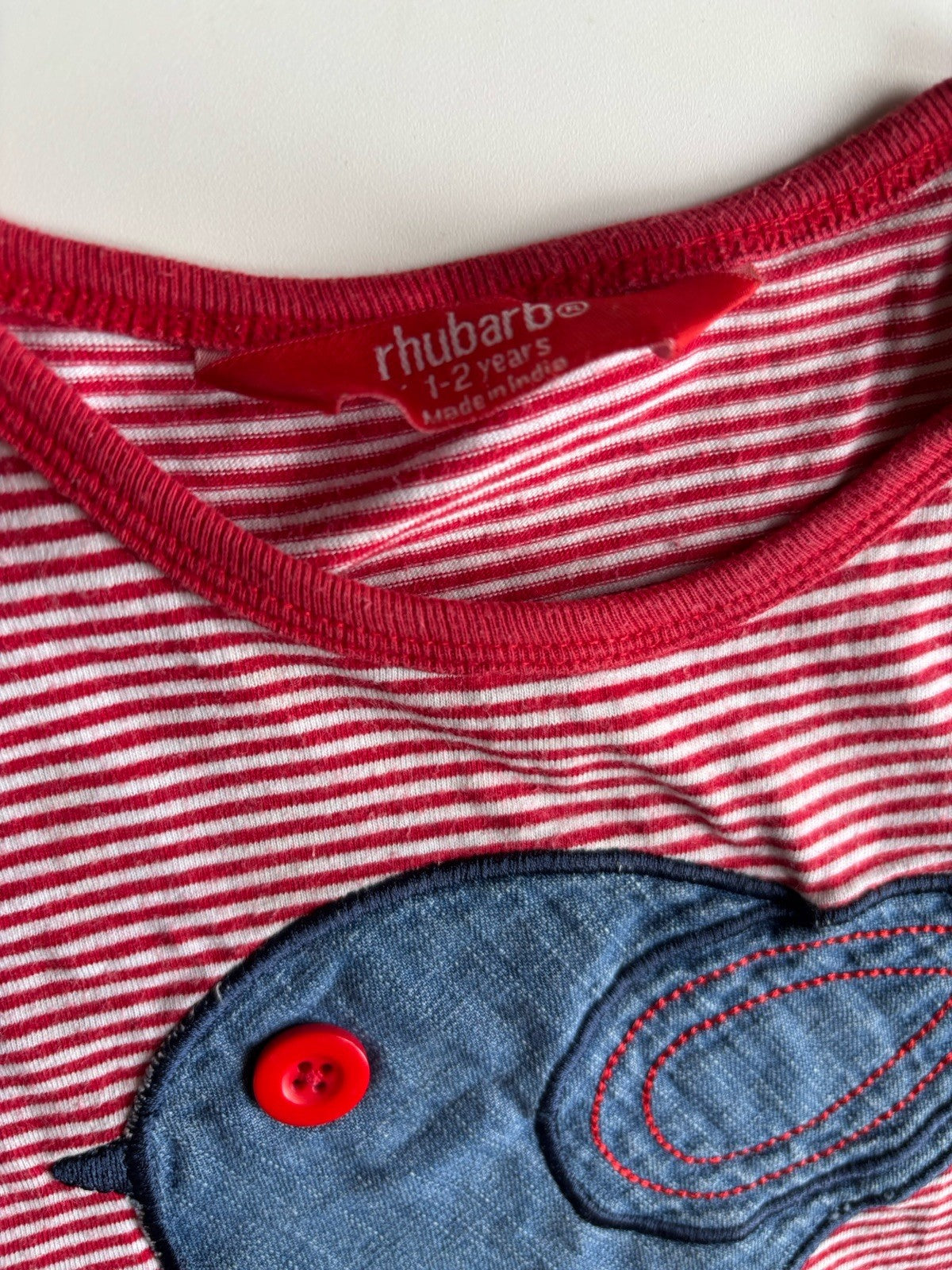 Rhubarb baby girl size 1-2 years red white stripe t-shirt denim bird, VGUC