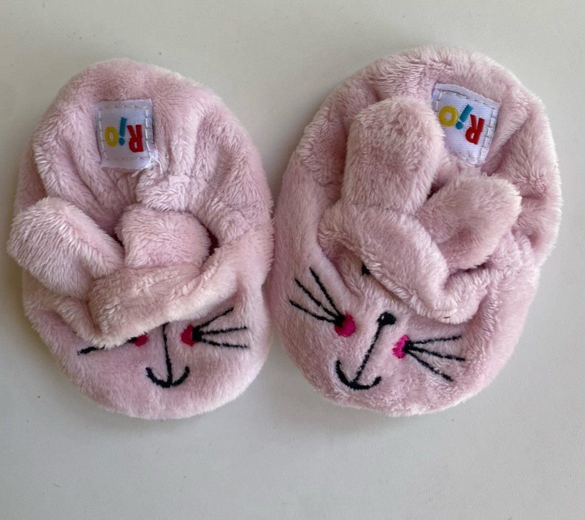 Rio baby girl size 0-6 months pink bunnies slippers shoes, VGUC