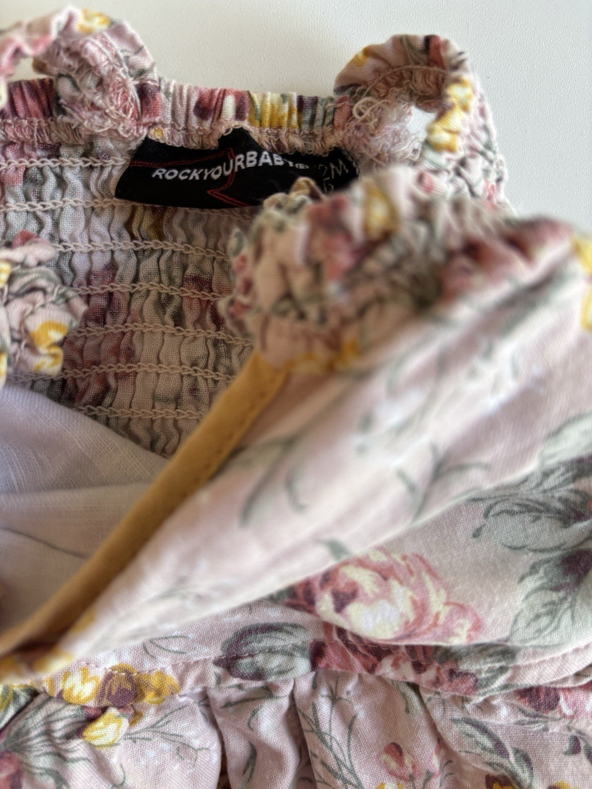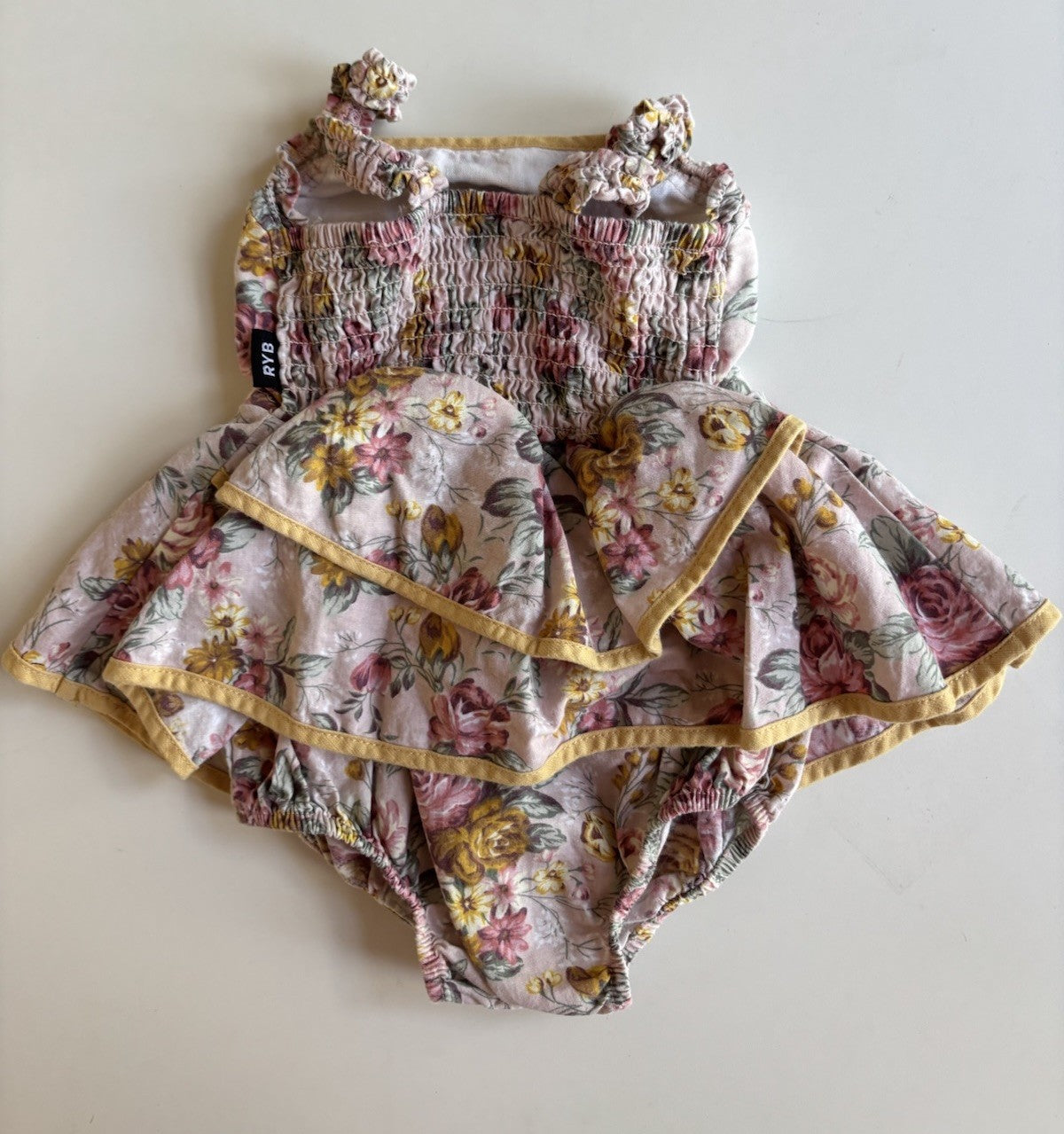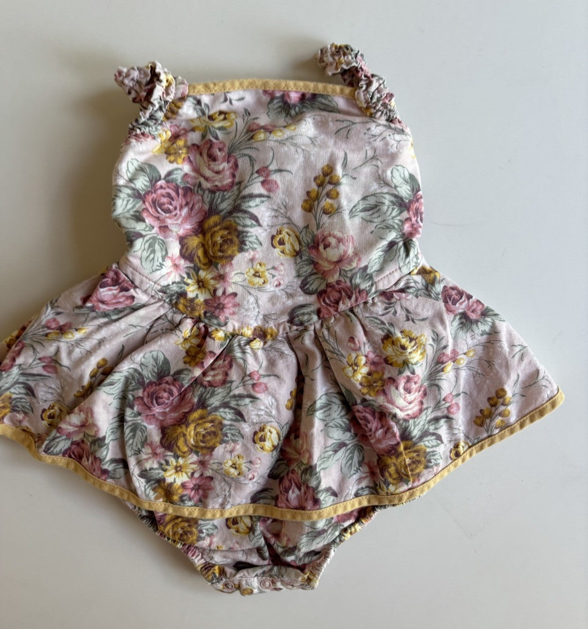 Rock Your Baby baby girl size 6-12 months pink floral bodysuit dress, VGUC