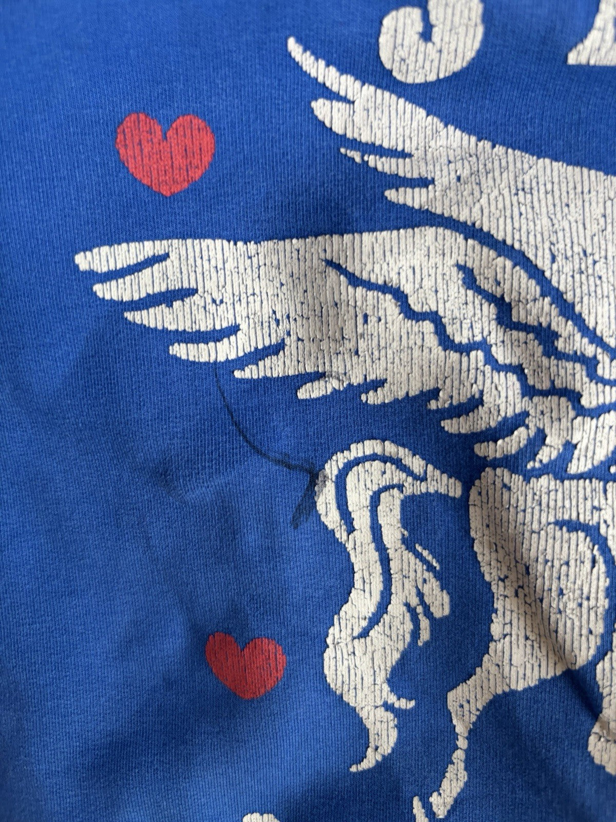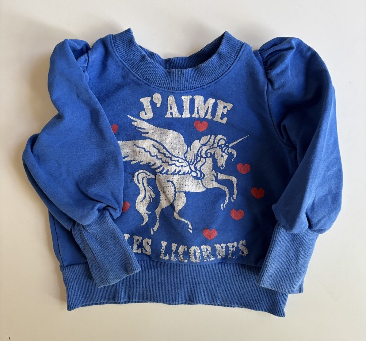Good used condition. Pen mark on the front and some fading on the print - photo included. Size tag has been removed but it's approximately size 2.
