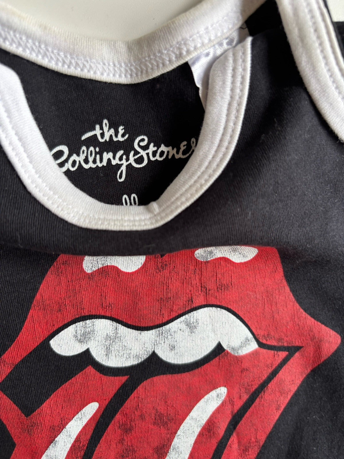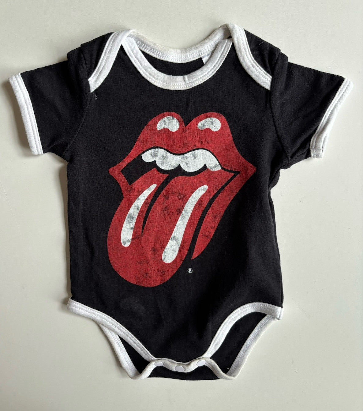 Rolling Stones baby size 3-6 months black mouth bodysuit, VGUC