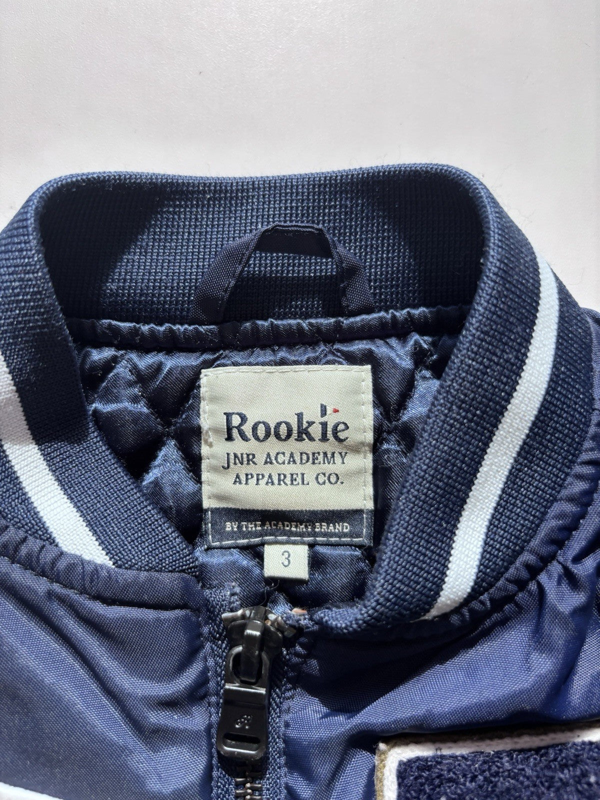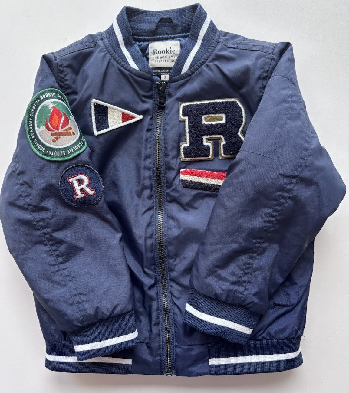 Rookie kids boys toddler size 3 navy blue zip up jacket patches, VGUC