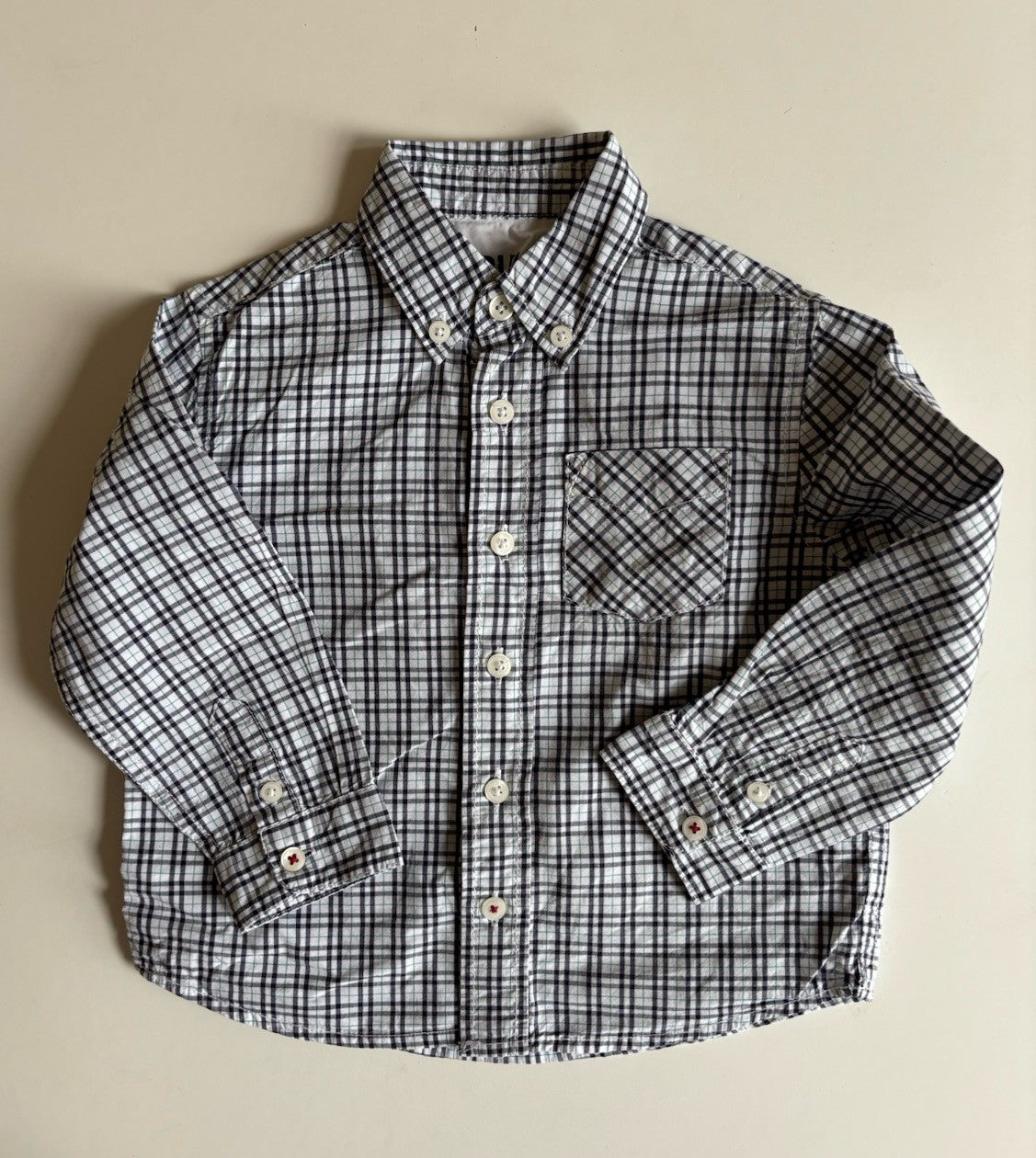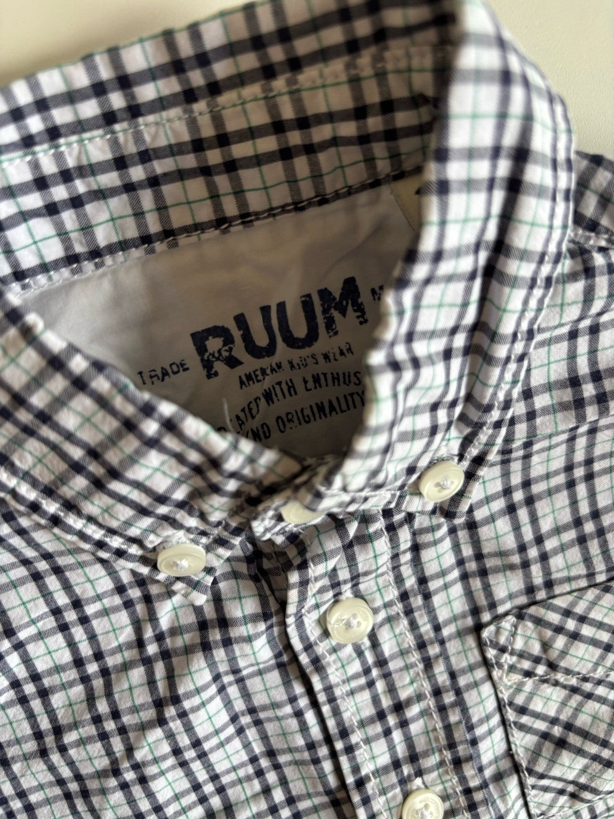 RUUM baby size 12-18 months blue green check button up shirt, VGUC
