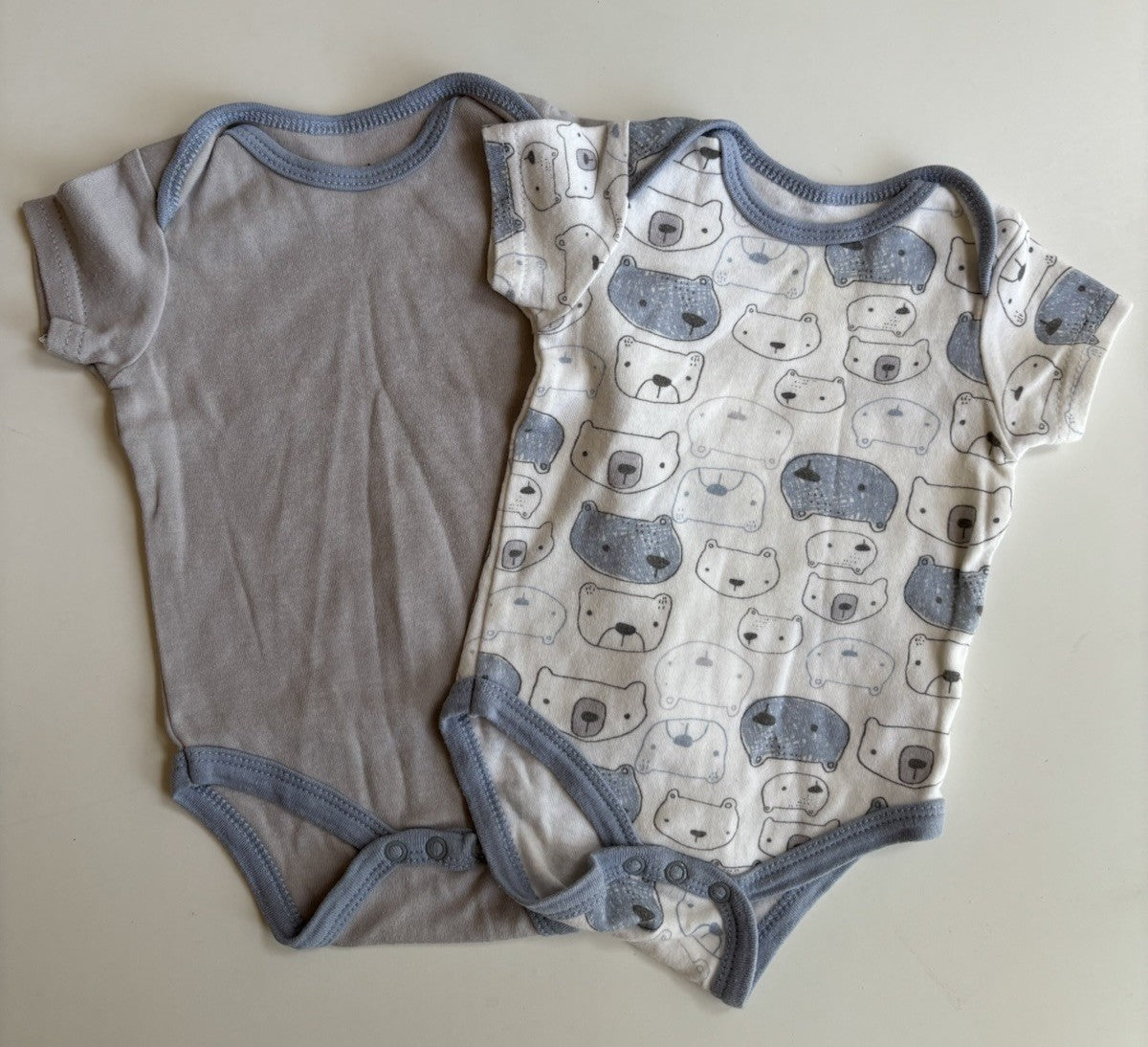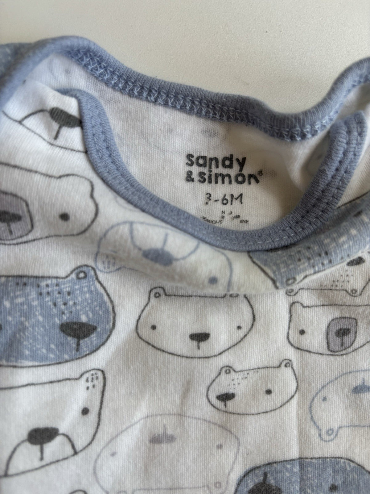 Sandy & Simon baby size 3-6 months x2 blue grey bears bodysuits, VGUC