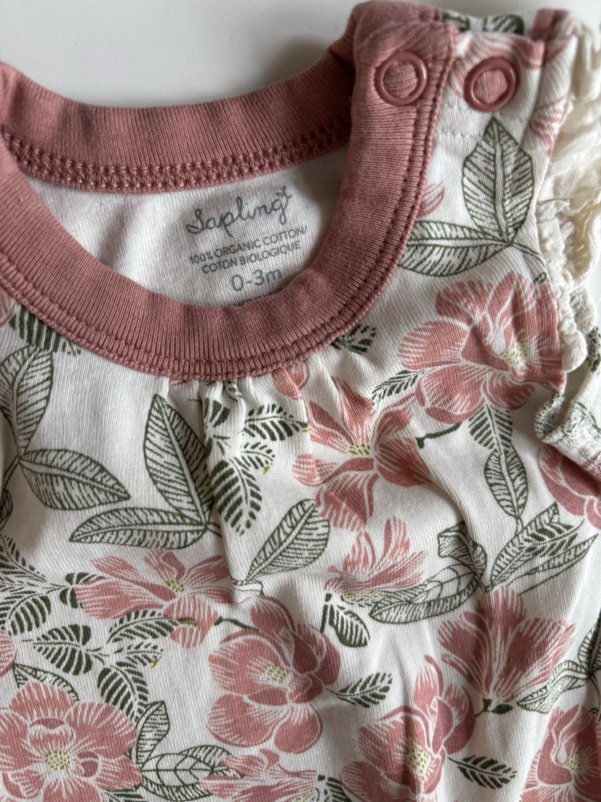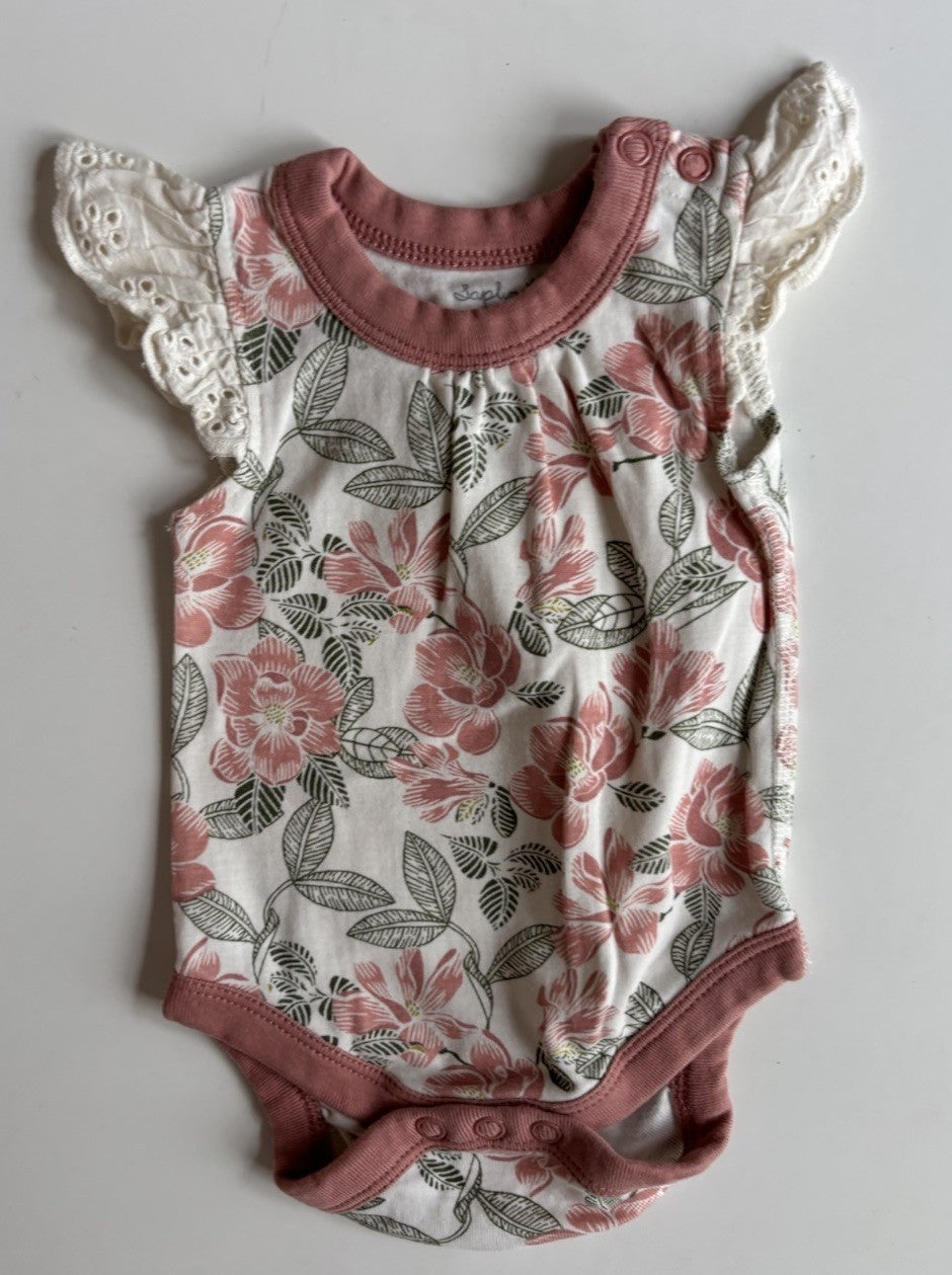 Sapling baby girl size 0-3 months pink floral bodysuit, VGUC