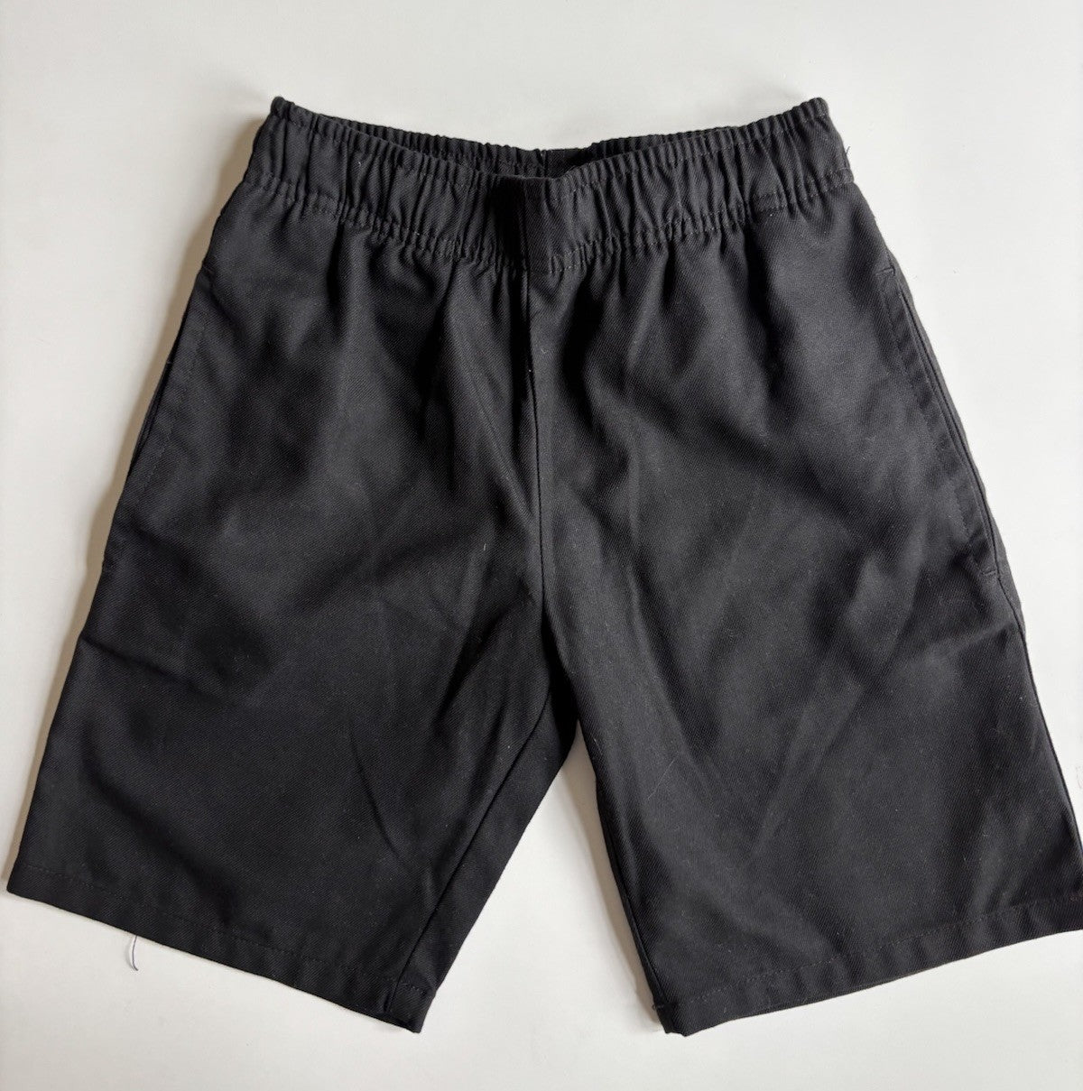 School Solutions kids boys size 5 black elastic waist shorts, VGUC