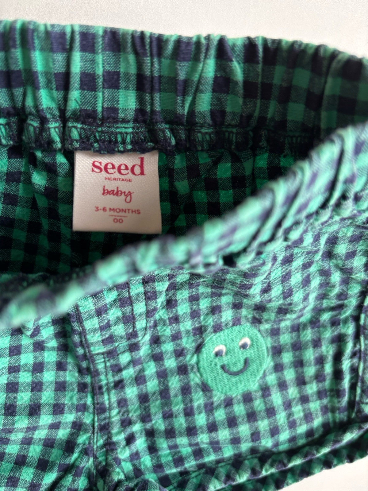 Seed baby boy size 3-6 months green blue check shorts, VGUC