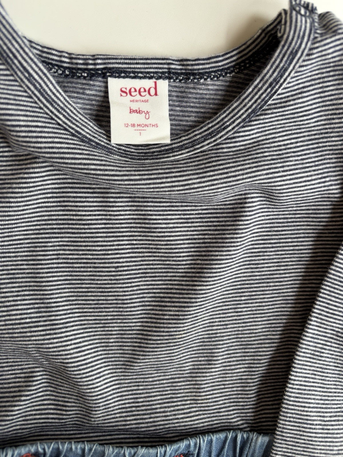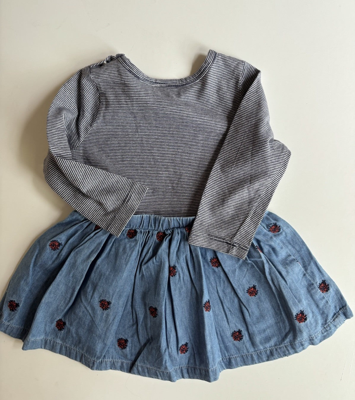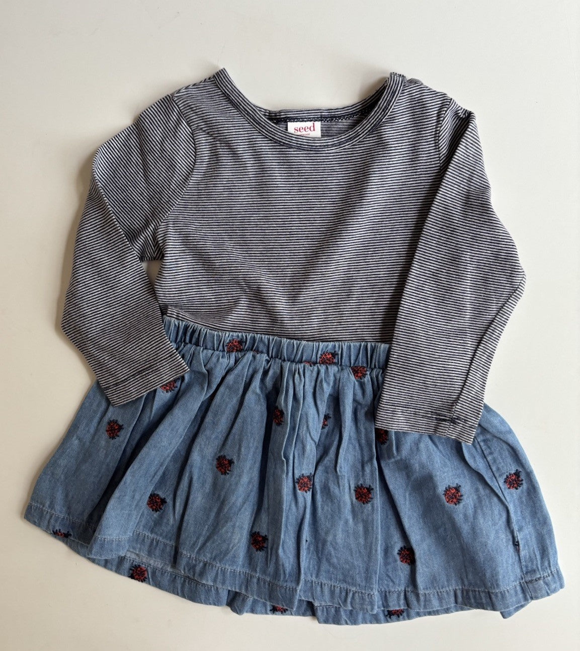 Seed baby girl size 12-18 months blue stripe ladybird dress, VGUC
