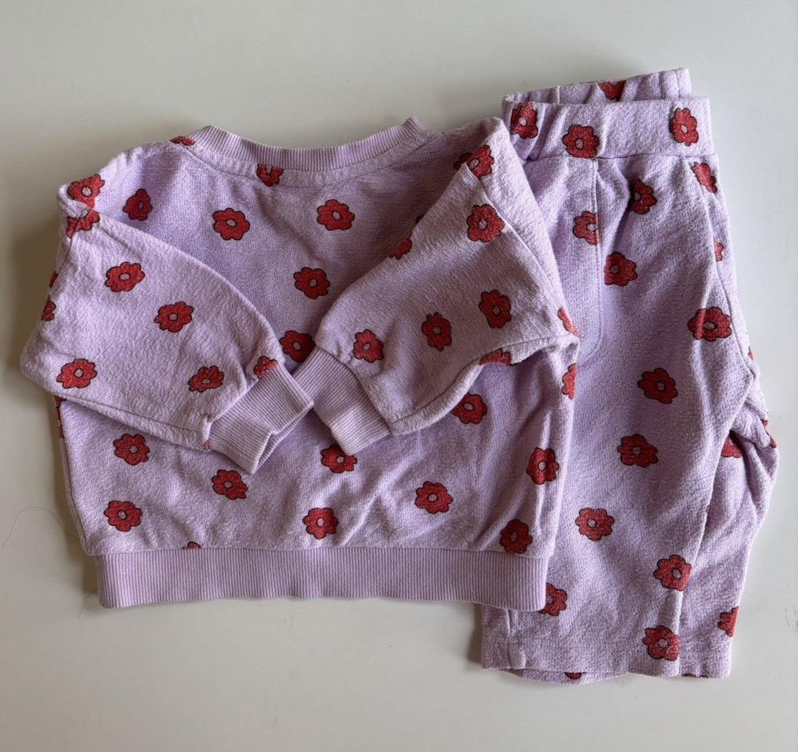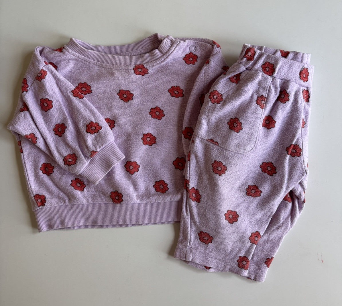 Seed baby girl size 3-6 months purple red floral tracksuit set, VGUC