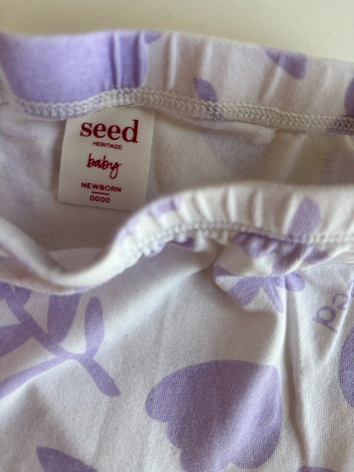 Seed baby girl size newborn purple white flower shapes leggings, VGUC