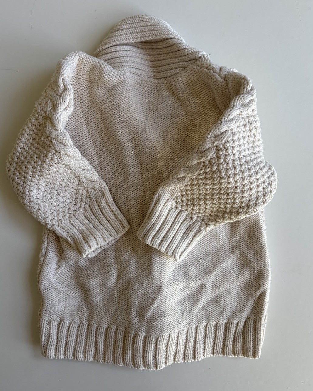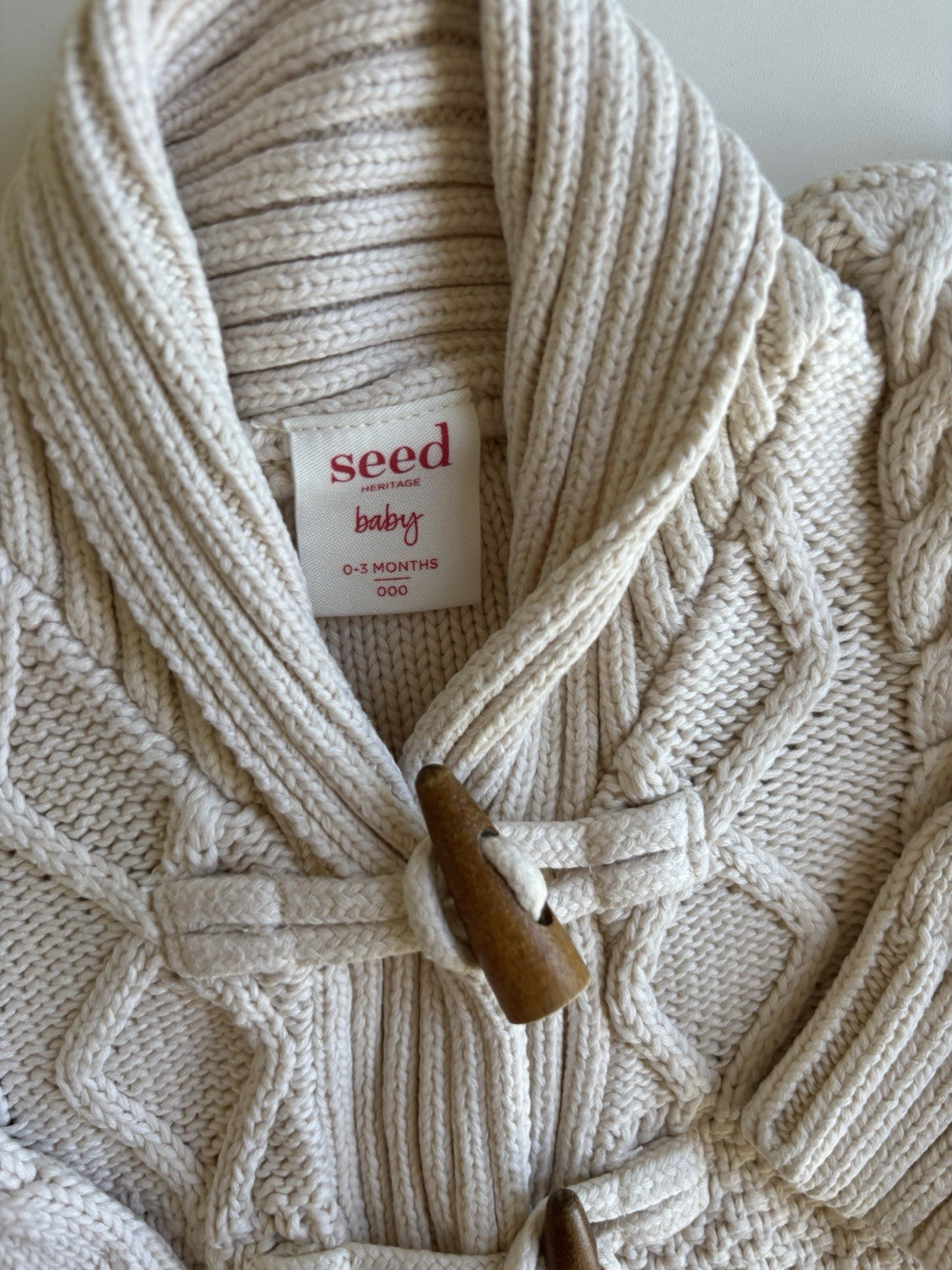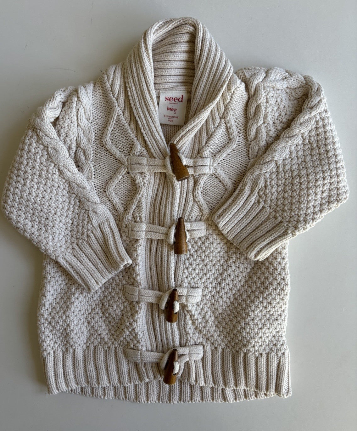 Seed baby size 0-3 months cream knitted duffle cardigan jumper, VGUC
