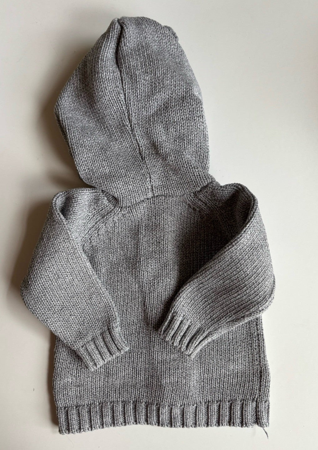 Seed baby size 3-6 months grey knitted button up hooded cardigan, VGUC
