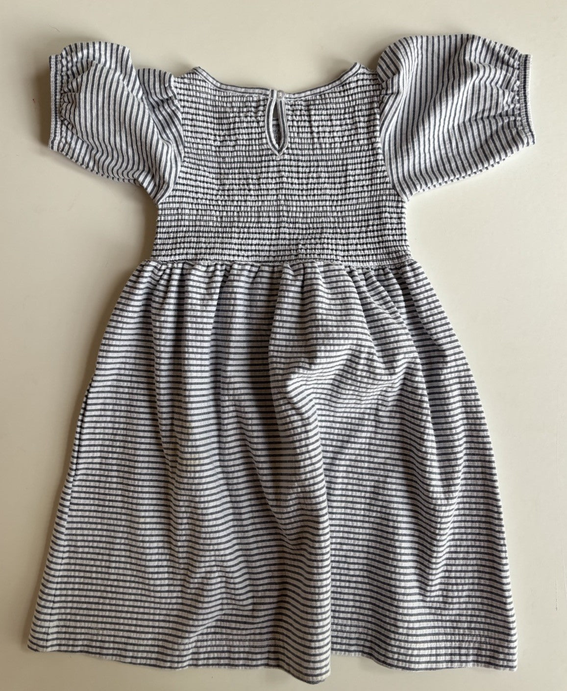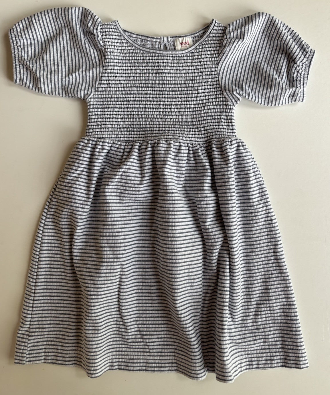 Seed kids girls size 4 blue white stripe smocked short sleeve dress, VGUC