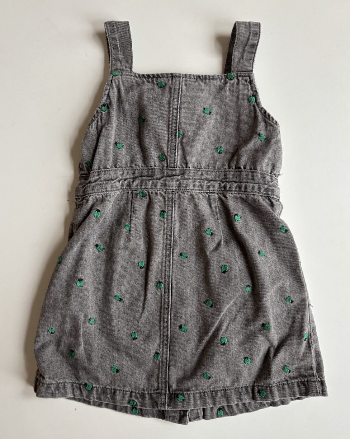 Seed kids girls size 4 grey denim pinafore dress embroidered apples, VGUC