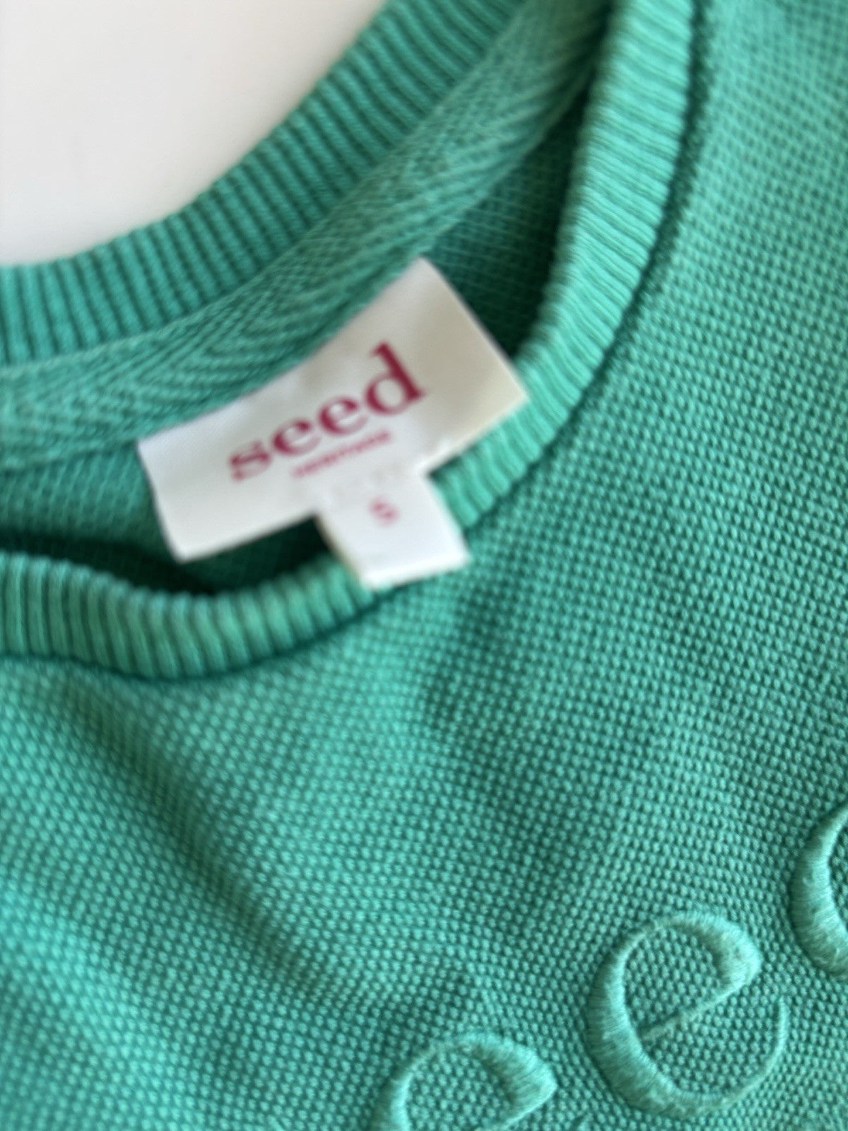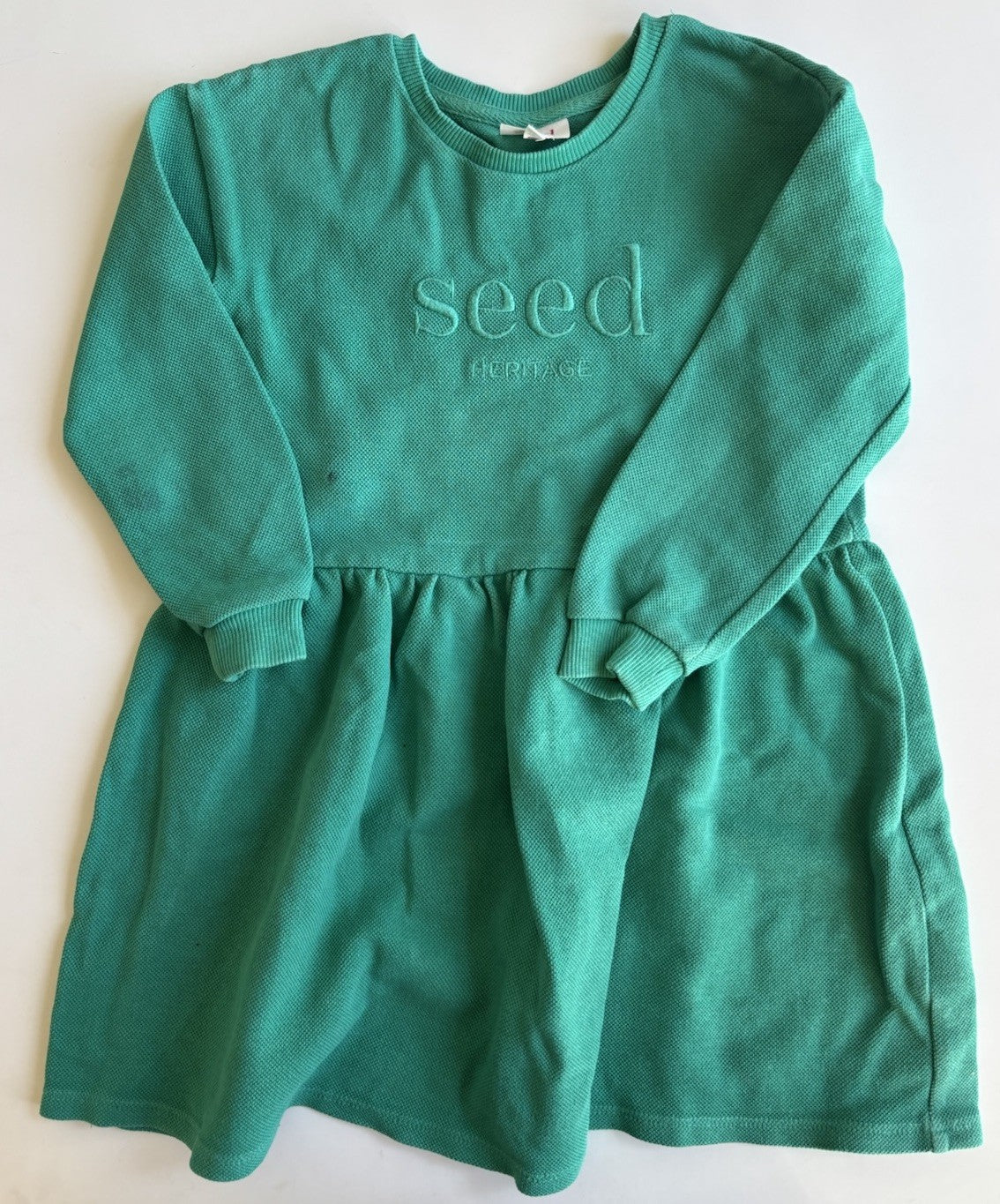 Seed kids girls size 5 green logo long sleeve dress, GUC