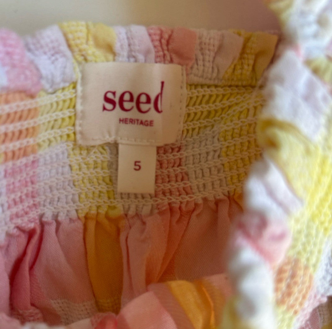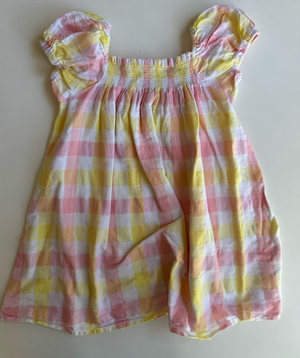 Seed kids girls size 5 yellow pink check smocked dress, VGUC