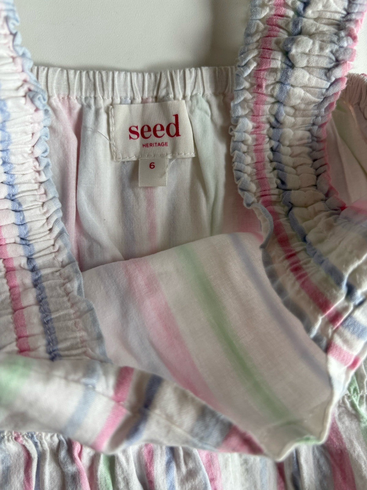 Seed kids girls size 6 white multicoloured stripe summer dress, VGUC
