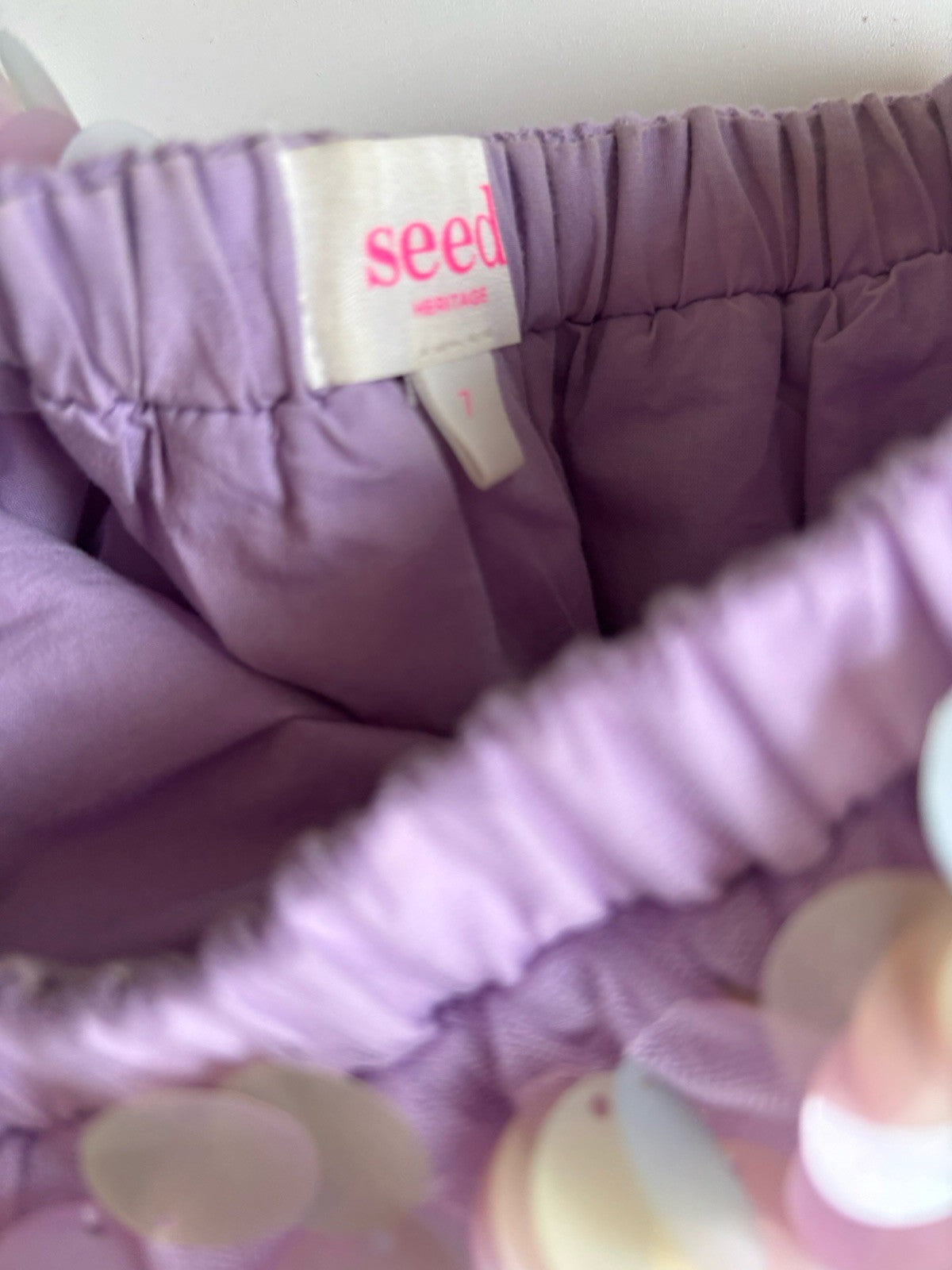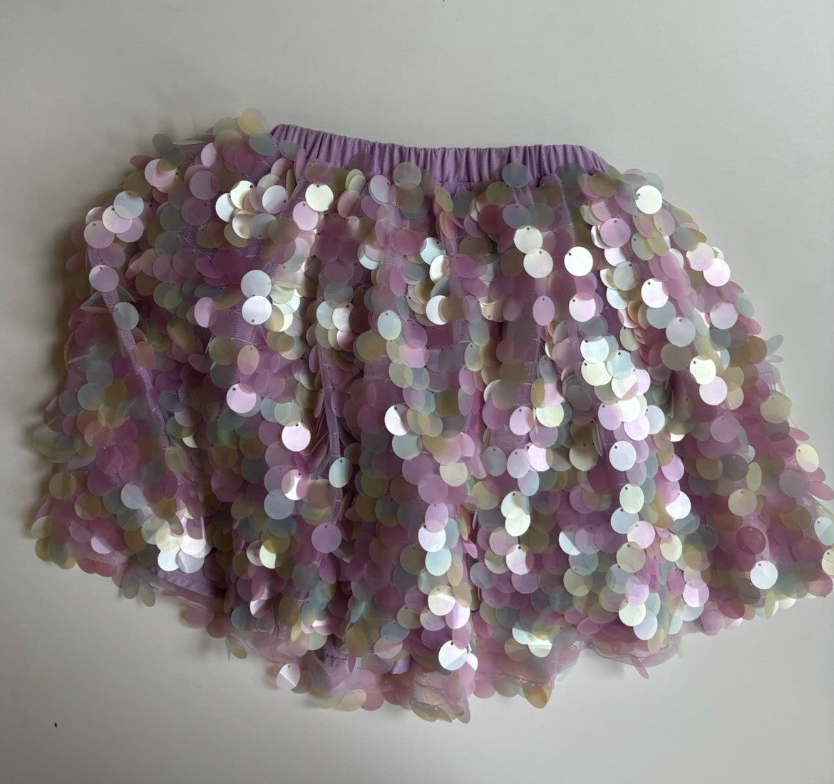 Very good used condition. Some of the sequins have fallen off but there are so many you cannot notice any missing.