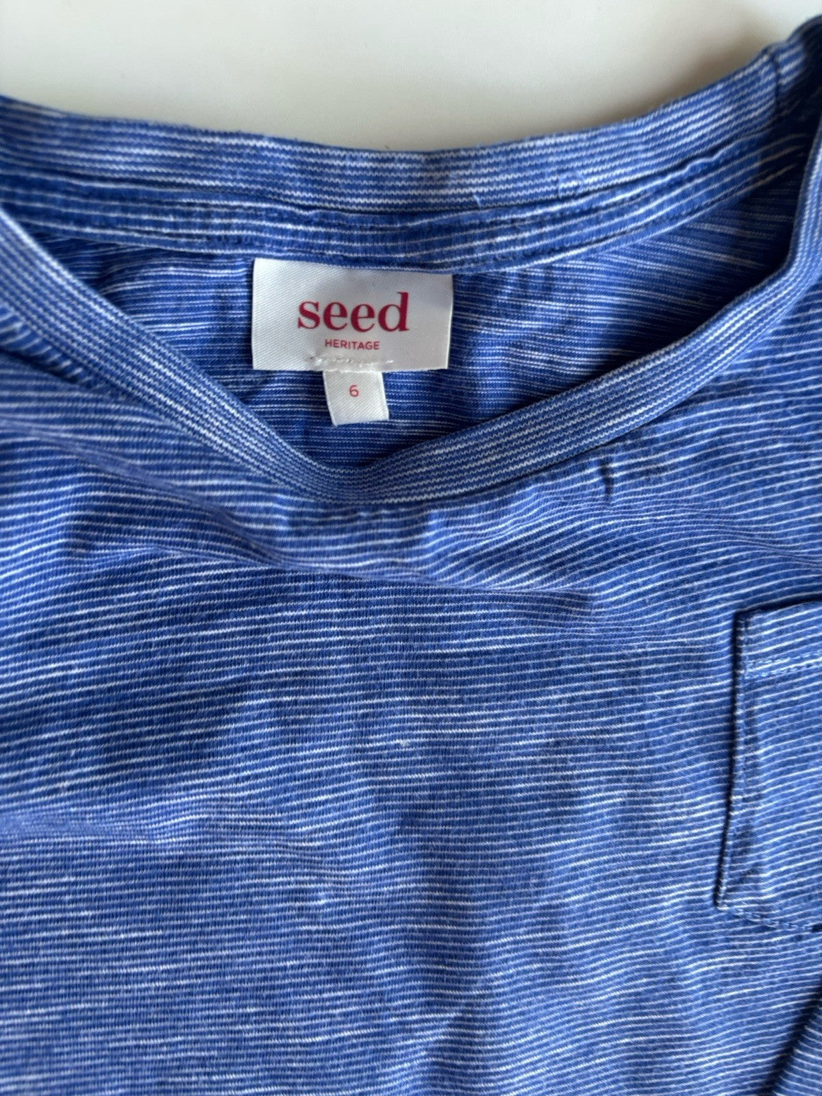 Seed kids size 6 blue white stripe long sleeve t-shirt, VGUC