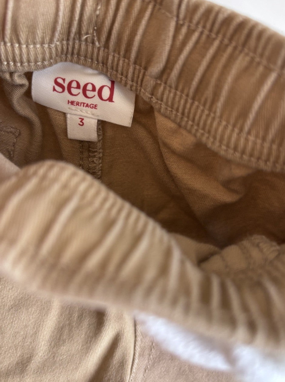 Seed kids toddler boys size 3 light brown elastic waist shorts, VGUC