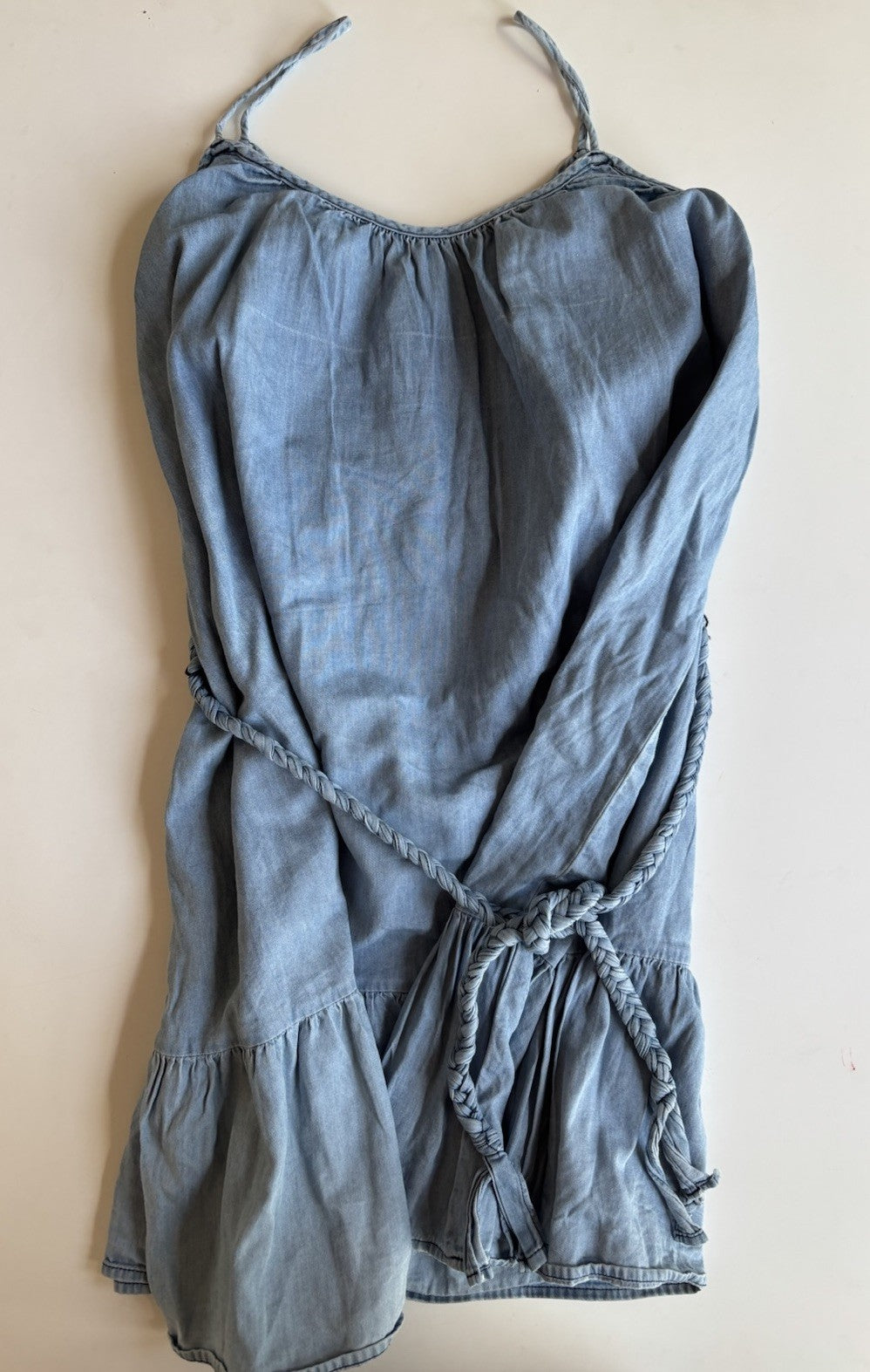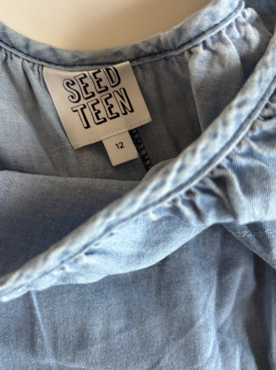 Seed Teen kids girls size 12 blue chambre denim belted summer dress, VGUC