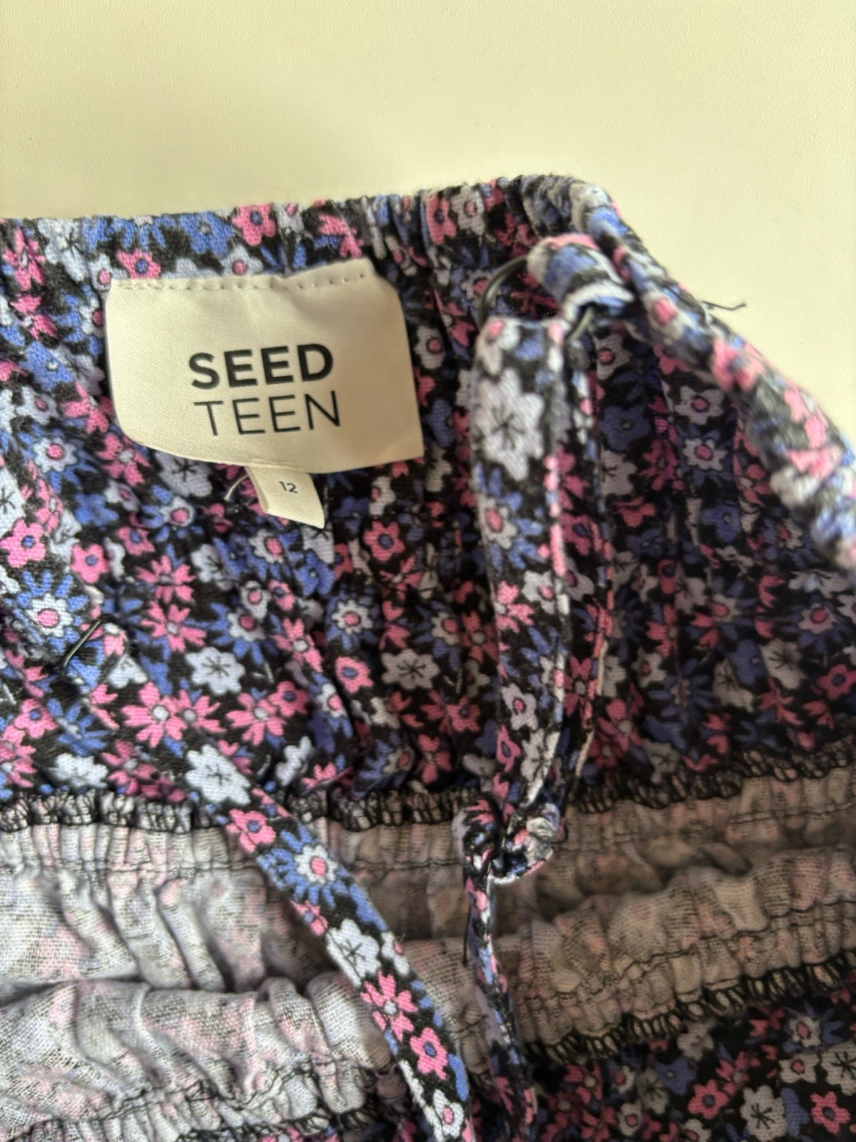 Seed Teen kids girls size 12 pink blue floral sleeveless linen blend d