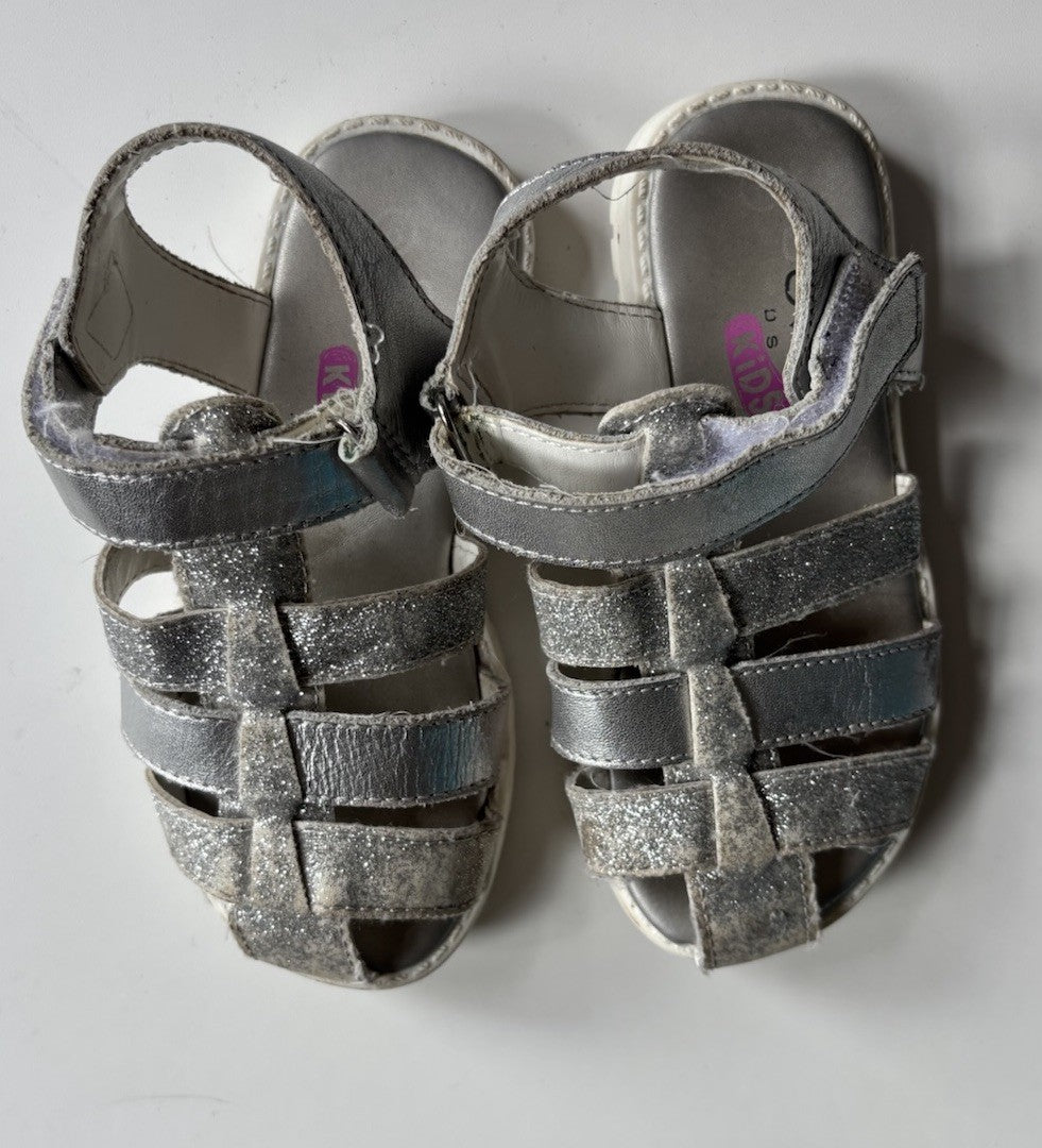 Seven Steps kids girls size 8 silver glitter strappy sandals, GUC