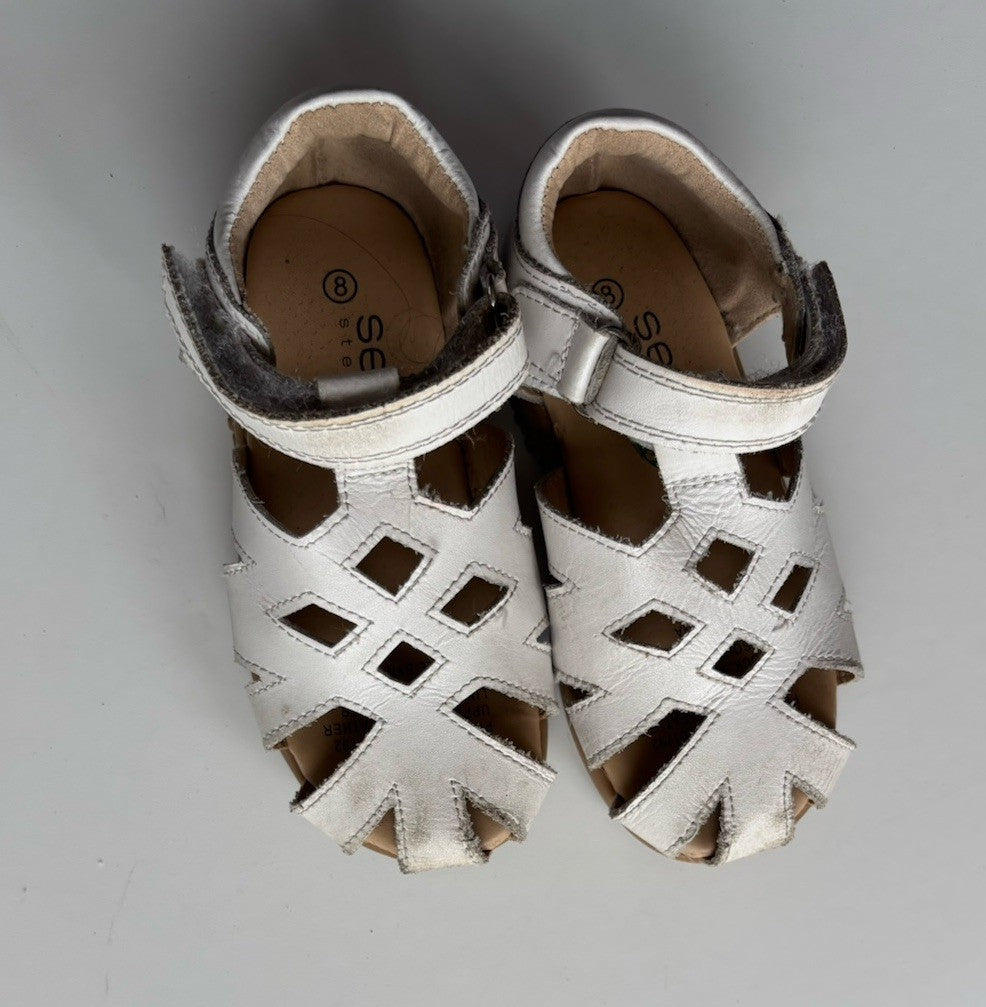 Seven Steps kids girls size 8 white strappy sandals shoes, GUC