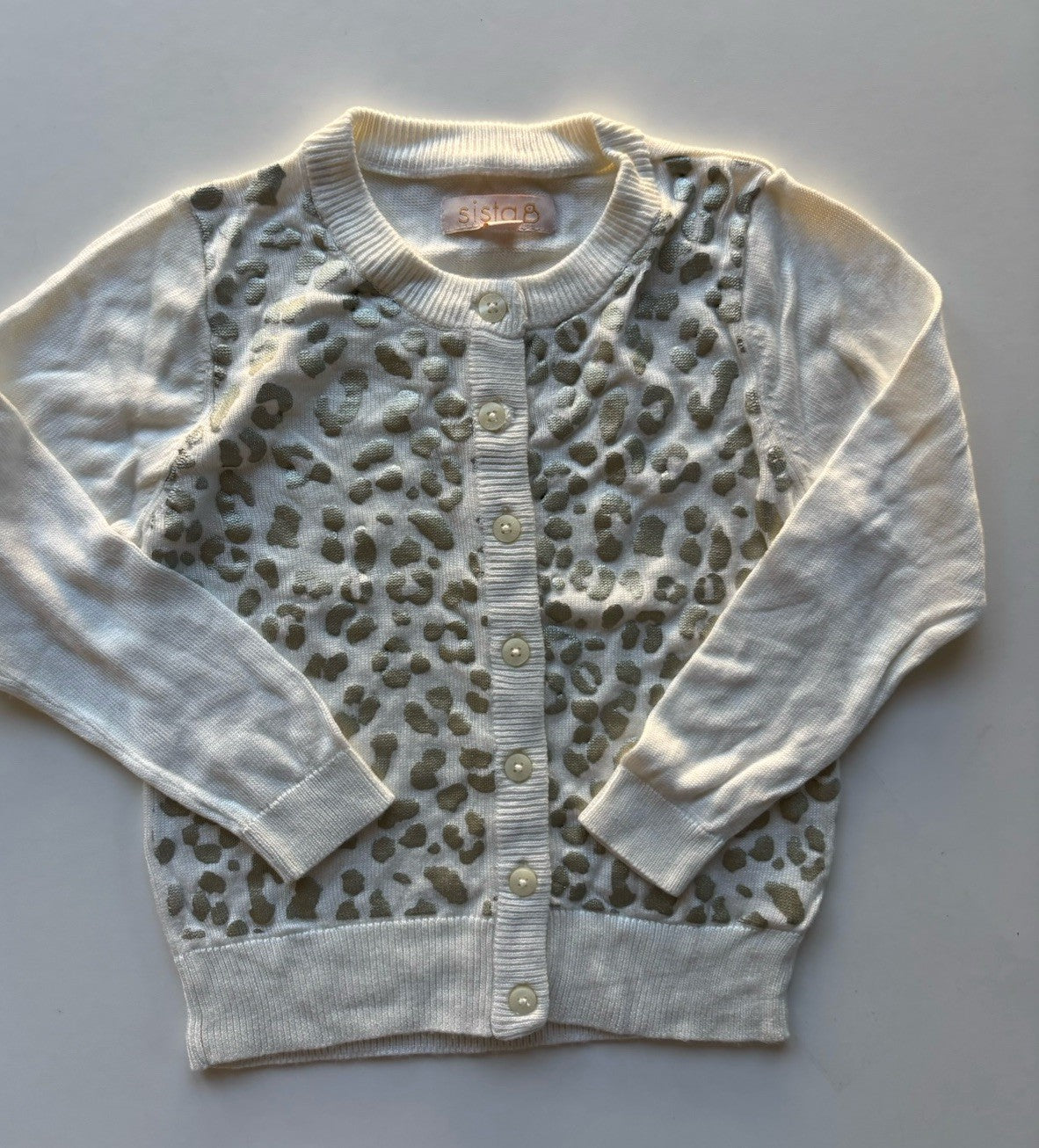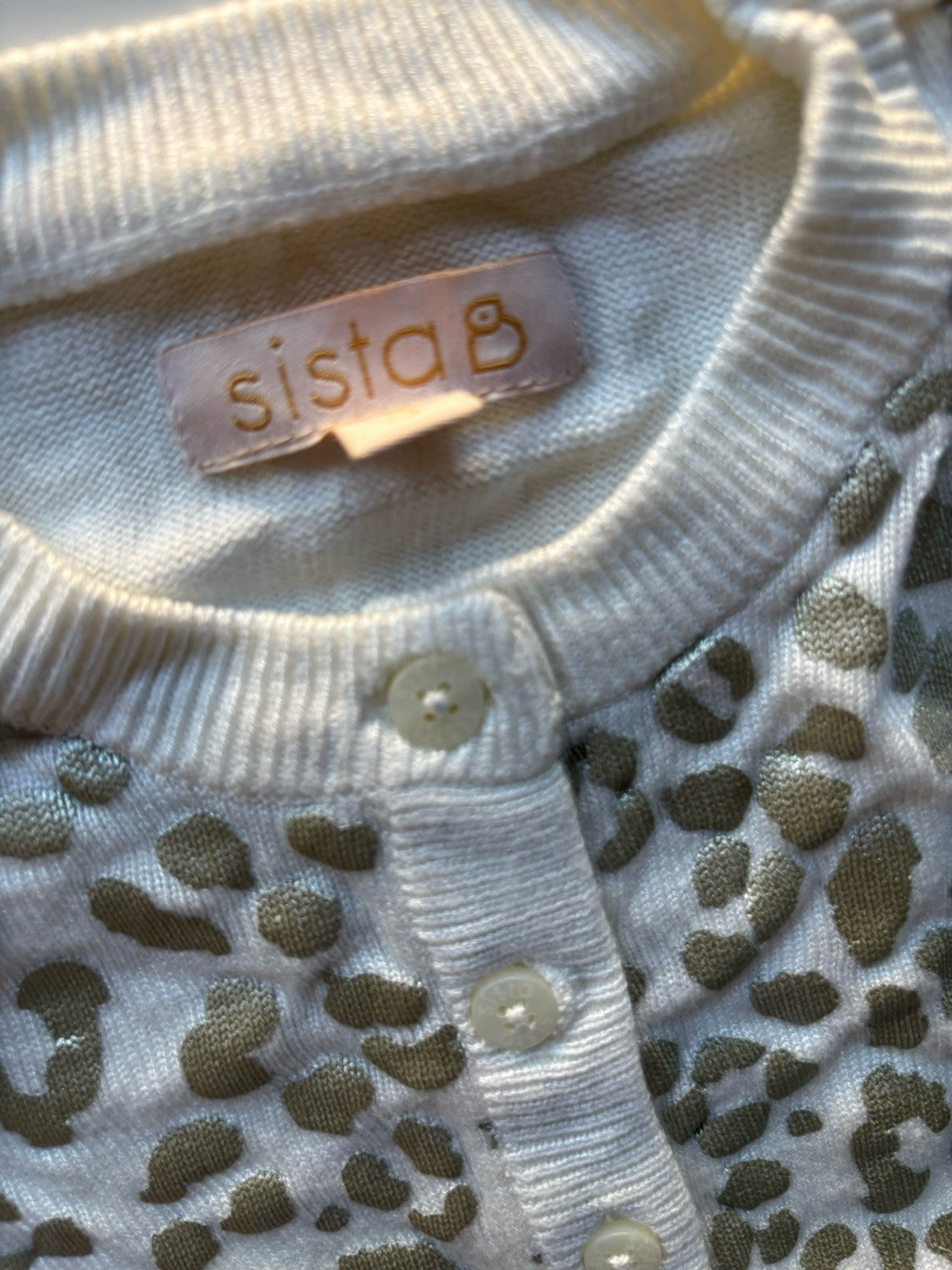 Sista kids girls toddler size 3 white silver leopard print knit cardigan, VGUC