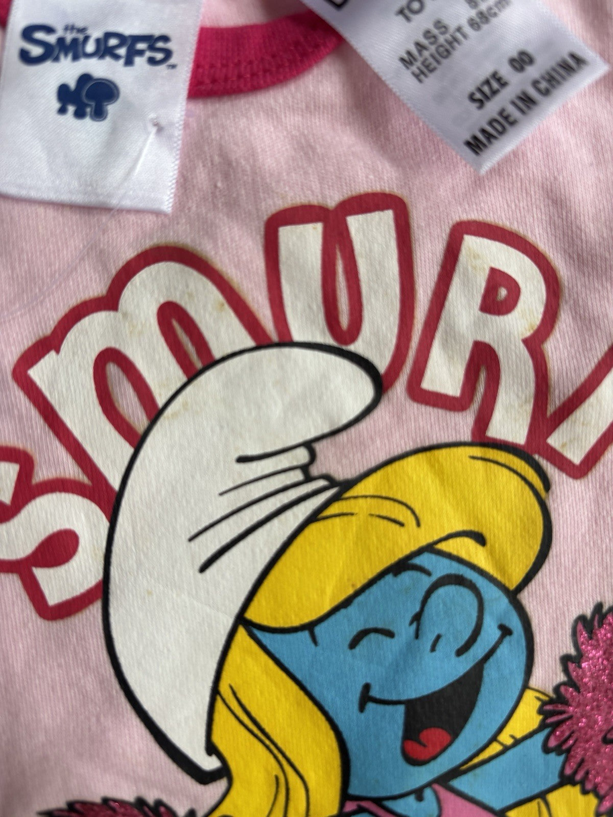 Smurfs baby girl size 3-6 months pink short sleeve bodysuit top, BNWT