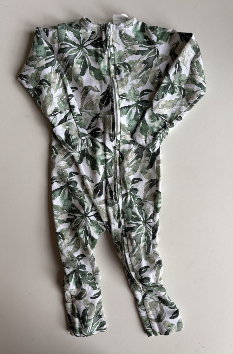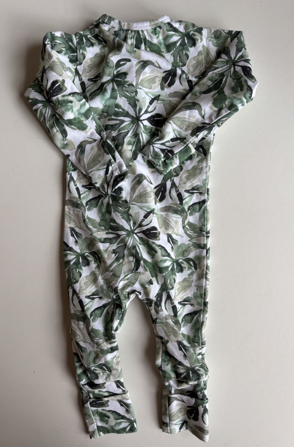 Snuggle Hunny kids baby size 3-6 months green leaves one-piece, VGUC