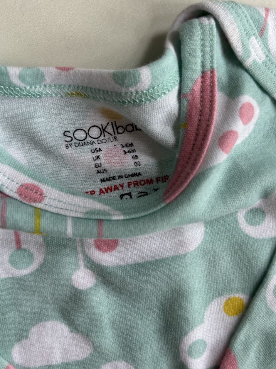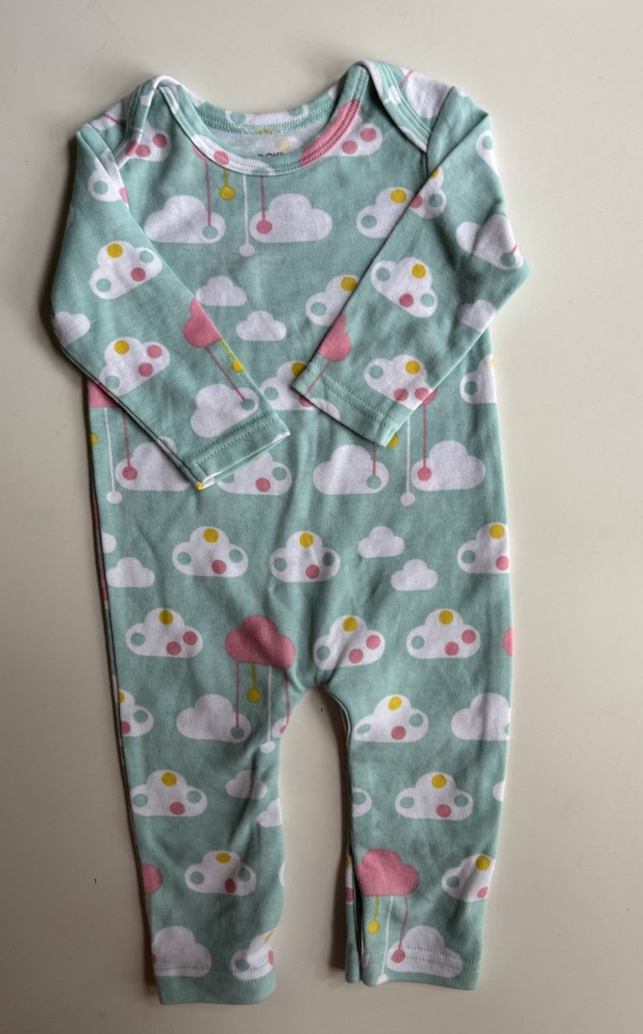 SOOKIBaby baby girl size 3-6 months blue white clouds one-piece, VGUC