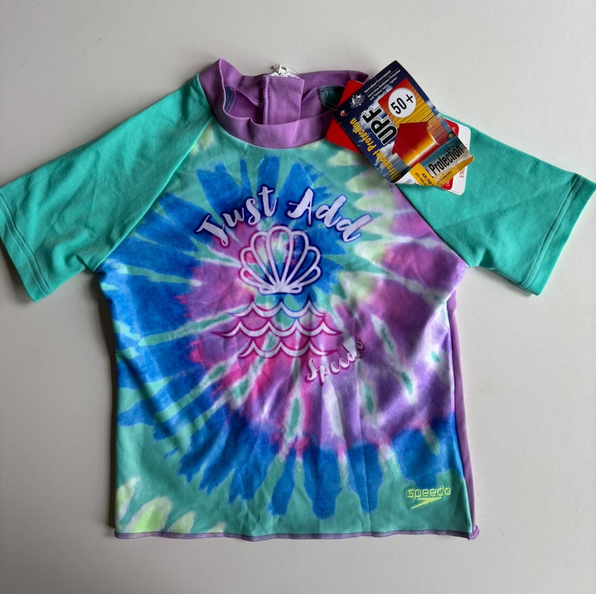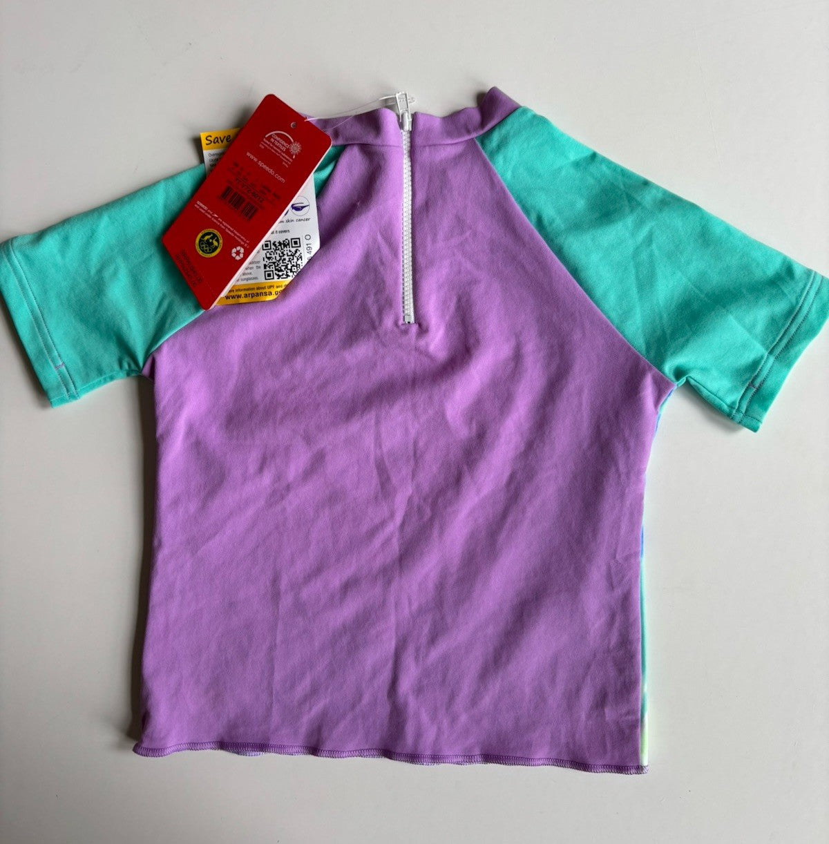 Speedo kids girls size 4 years purple green short sleeve rash vest swim, BNWT