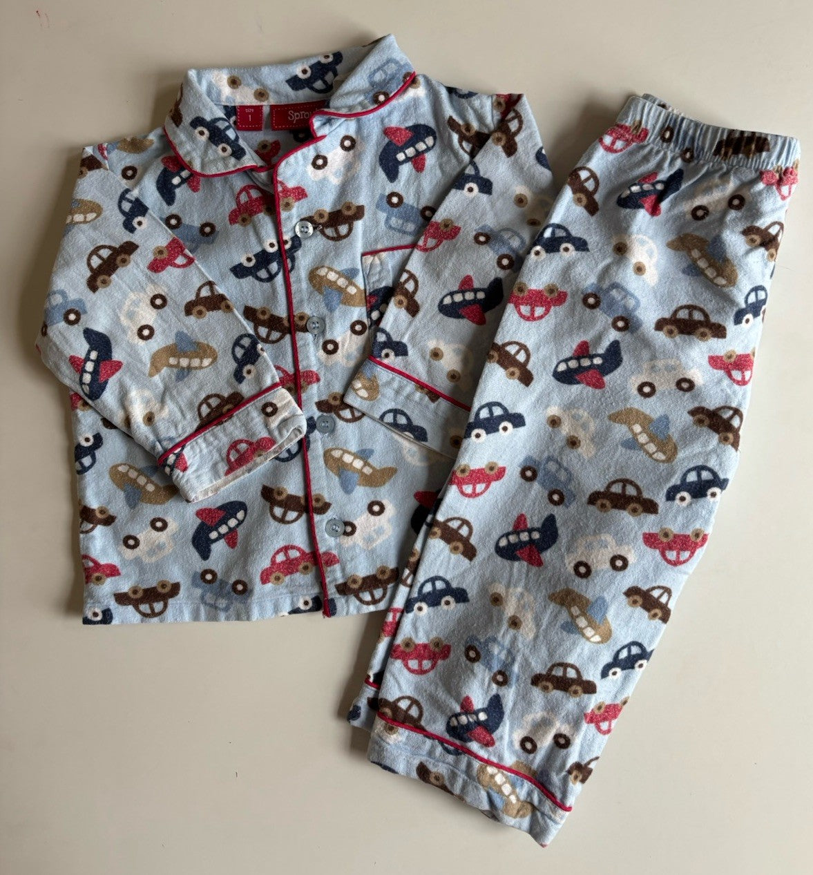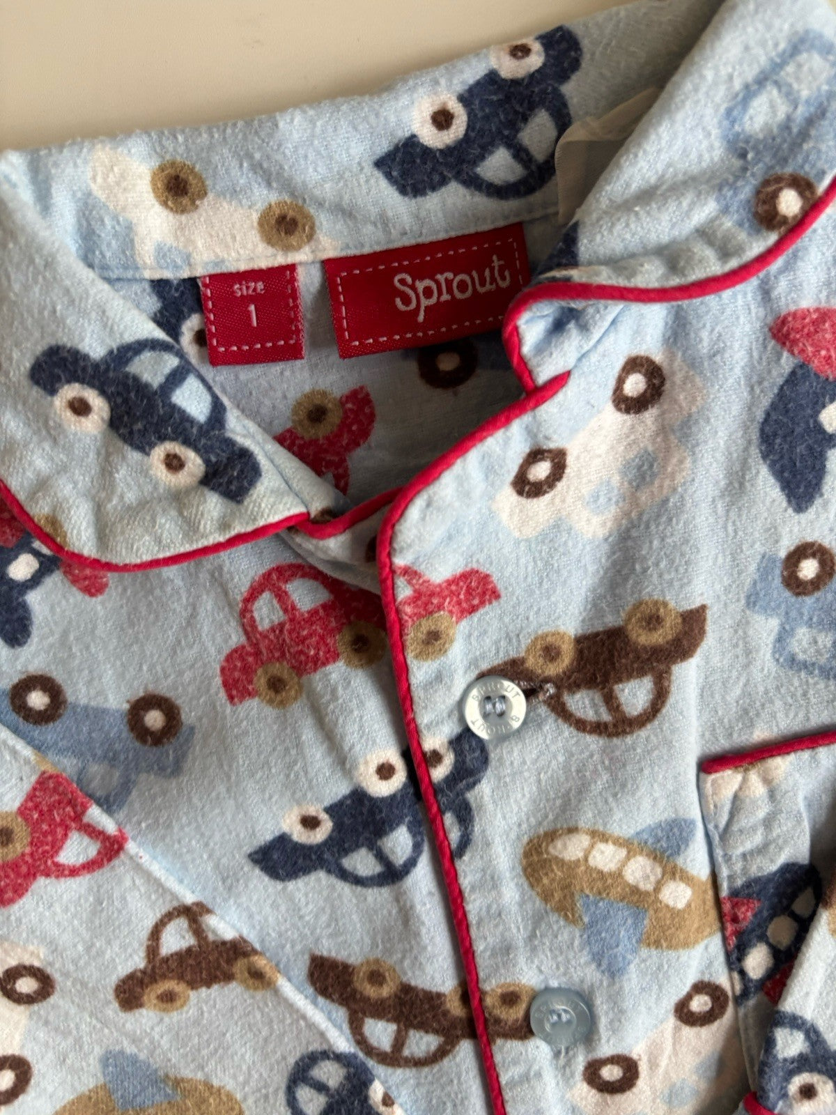 Sprout baby boy size 12-18 months blue cars flannel PJ set, GUC