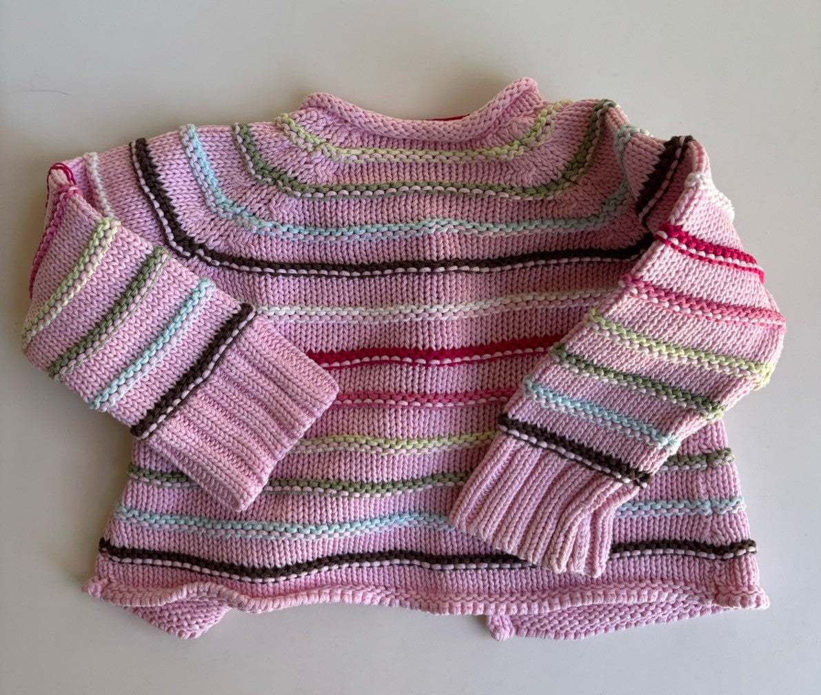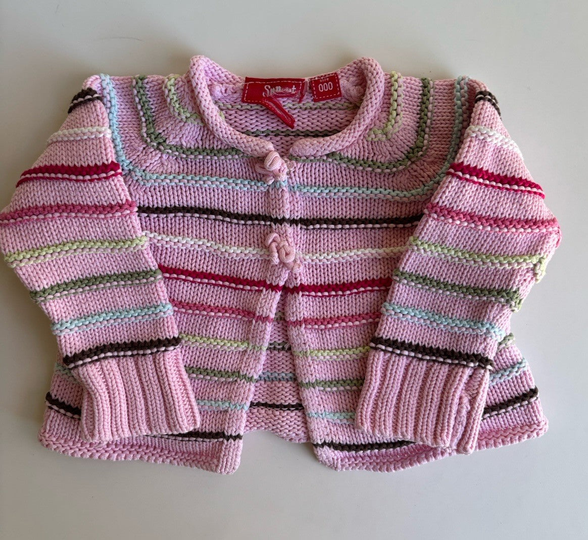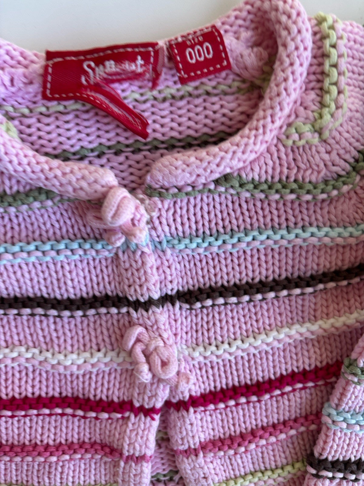Sprout baby girl size 0-3 months pink stripe knitted cardigan, VGUC