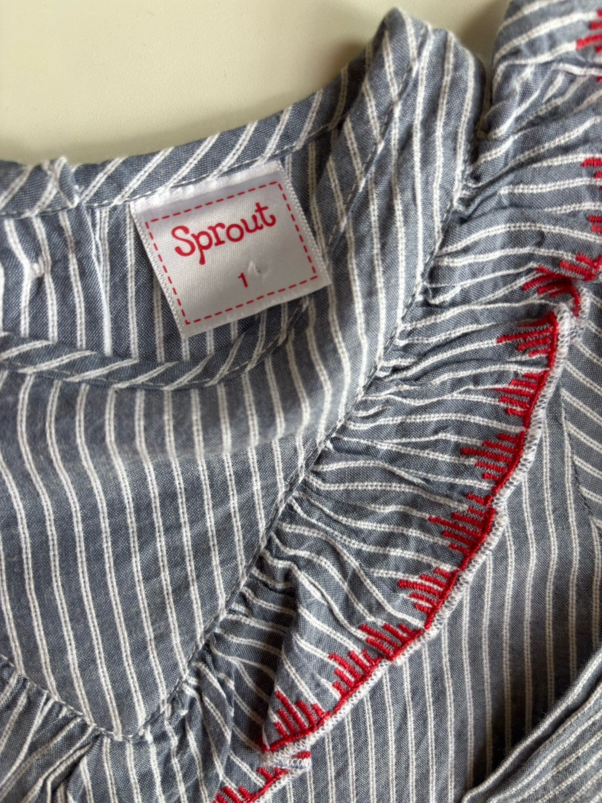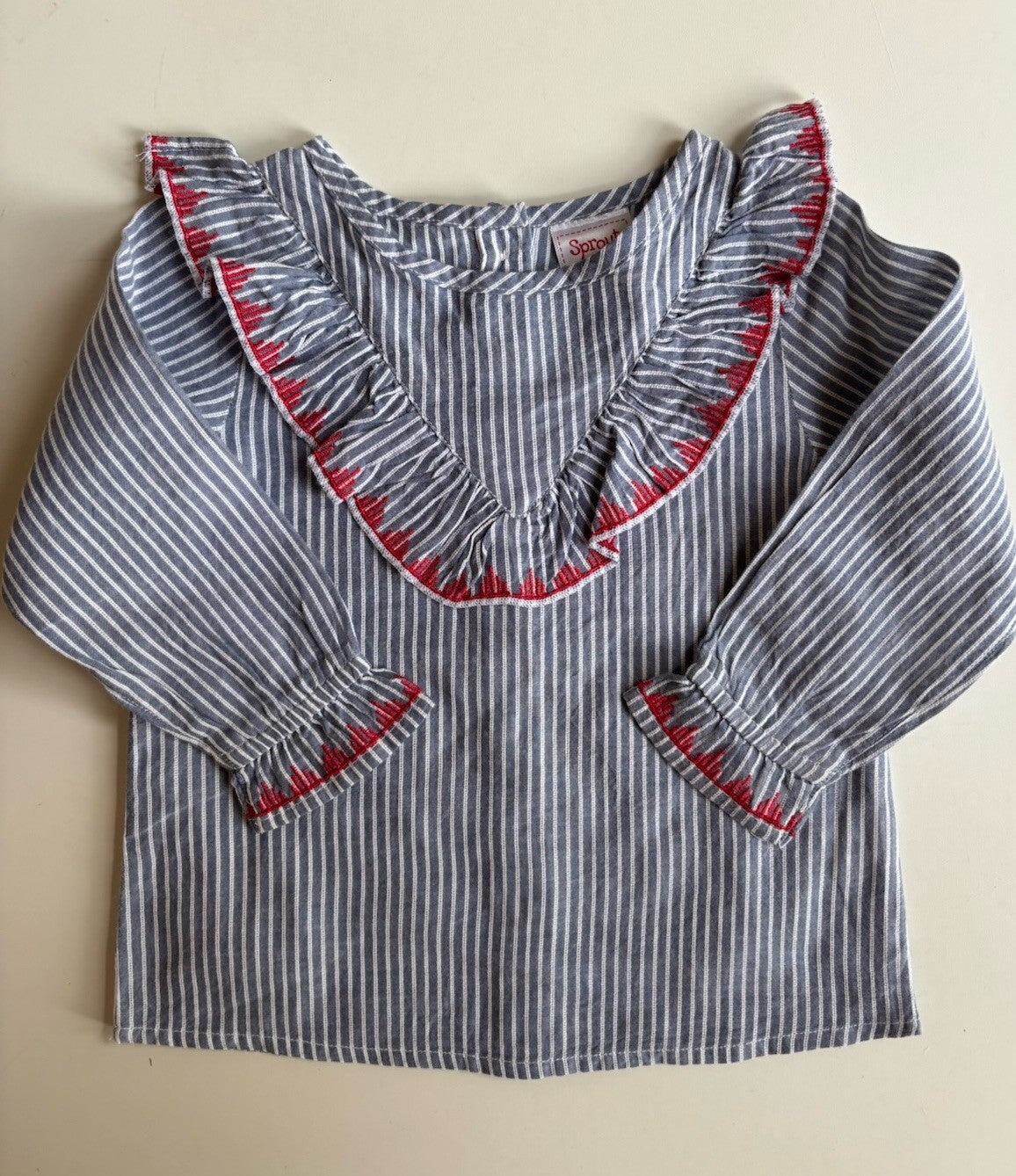 Sprout baby girl size 12-18 months grey blue stripe blouse shirt, VGUC