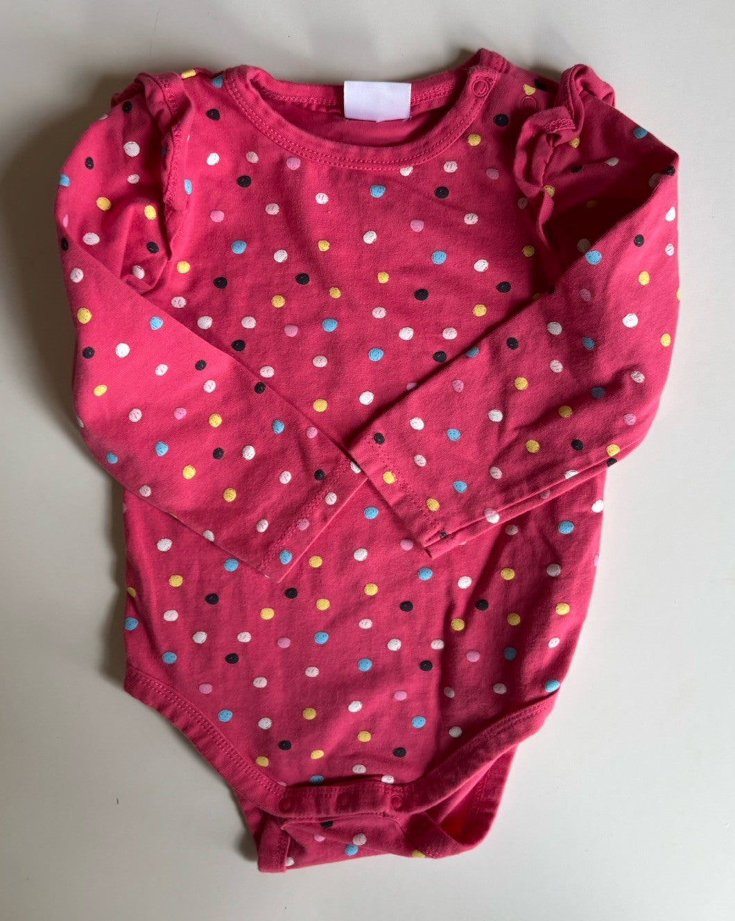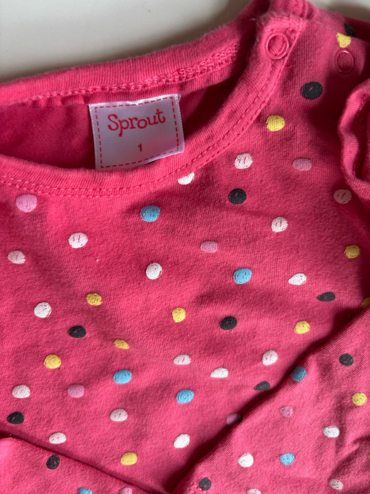 Sprout baby girl size 12-18 months pink spot long sleeve bodysuit, VGU