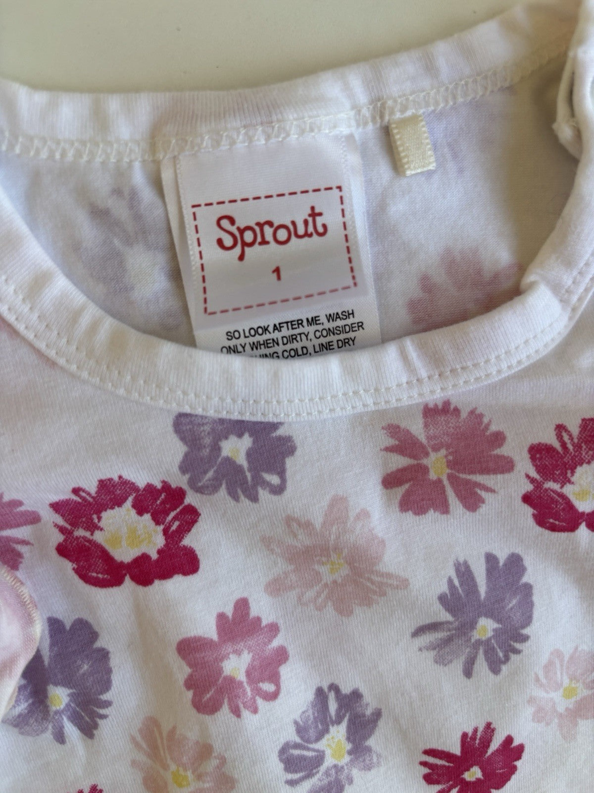 Sprout baby girl size 12-18 months white pink floral bodysuit, VGUC