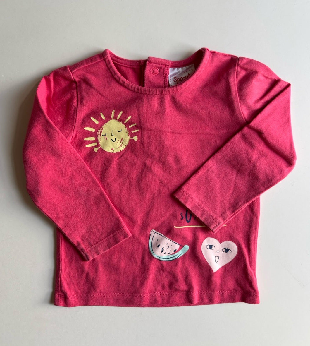 Sprout baby girl size 3-6 months pink long sleeve t-shirt sun, VGUC