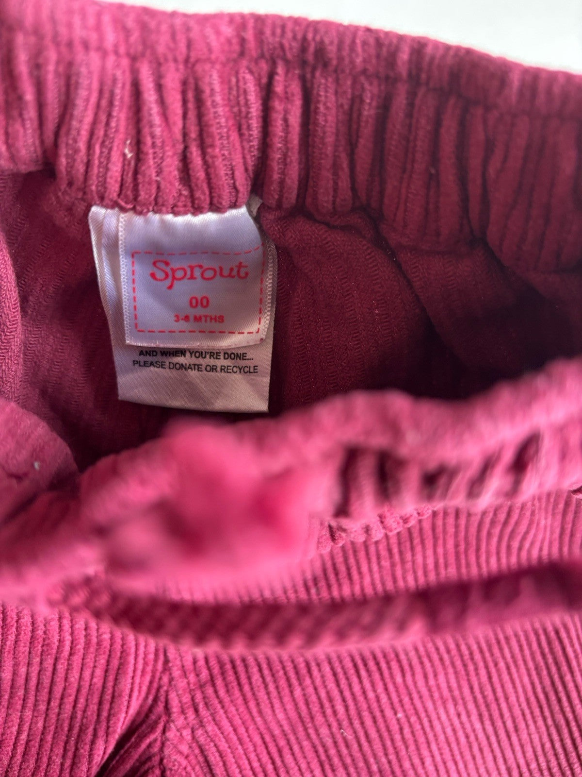 Sprout baby girl size 3-6 months pink purple cord pants, VGUC