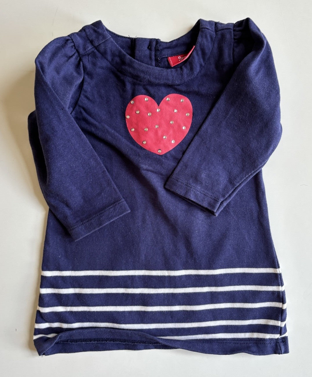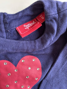 Sprout baby girl size 6-12 months blue long sleeve dress heart, VGUC