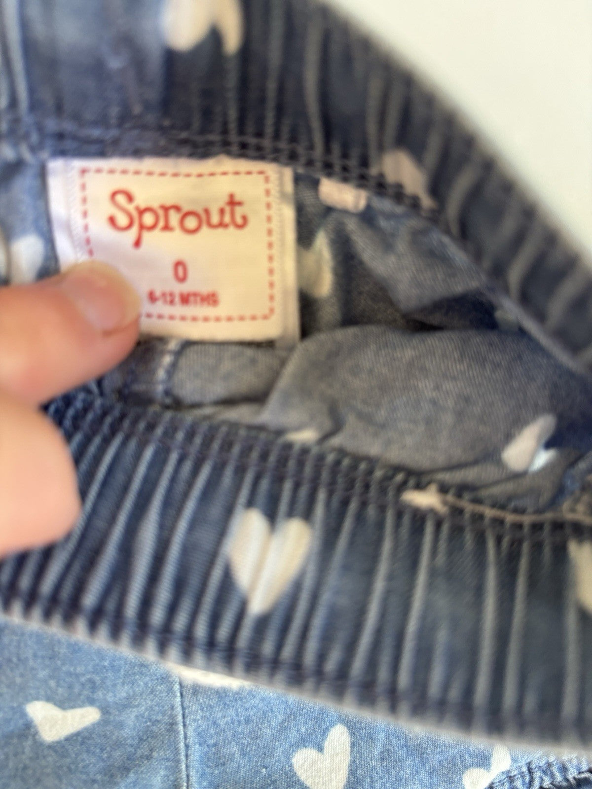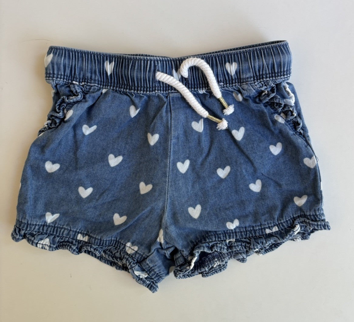Sprout baby girl size 6-12 months blue white hearts drawstring shorts, VGUC