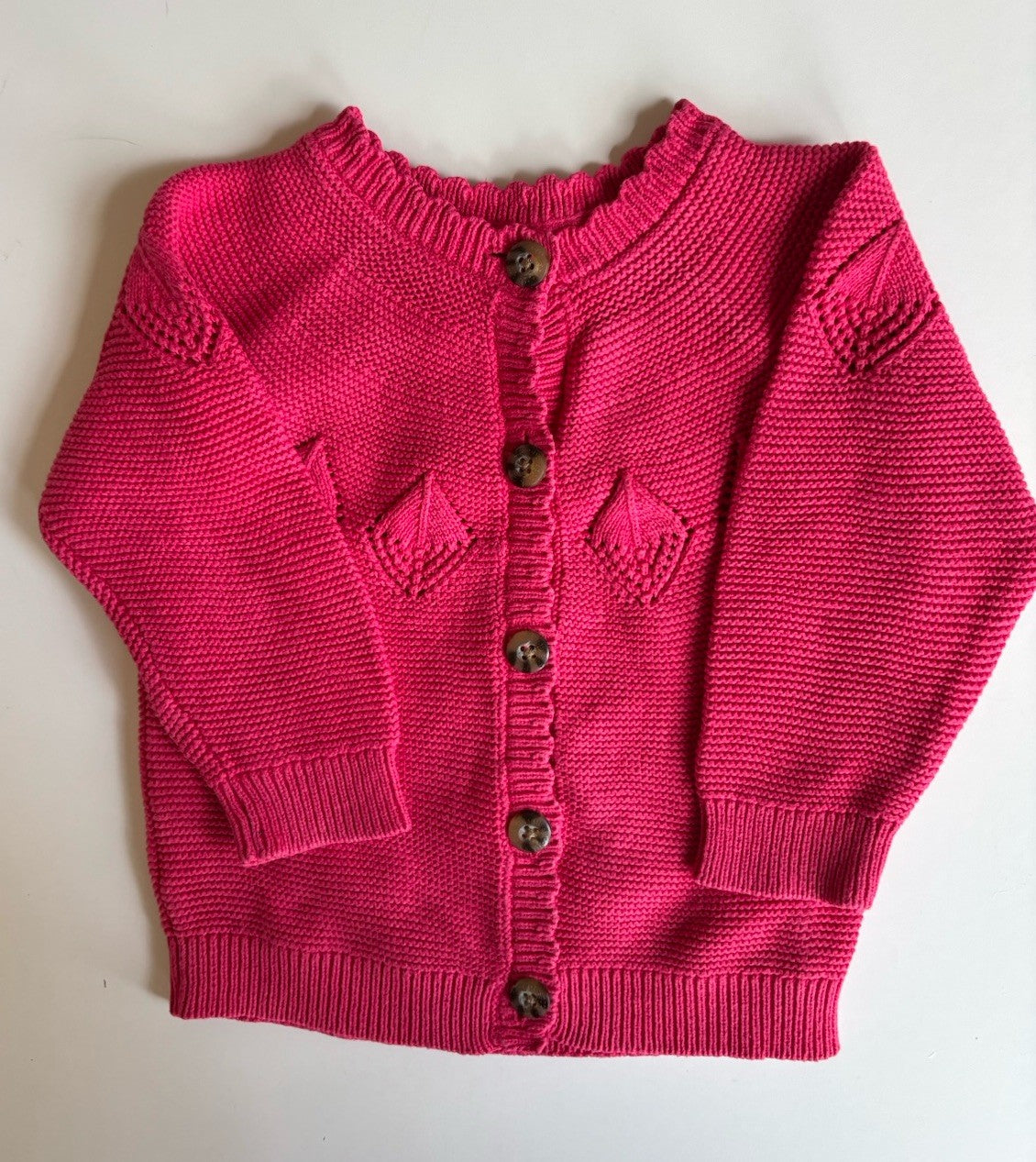 Sprout baby girl size 6-12 months pink knitted cardigan jumper, VGUC