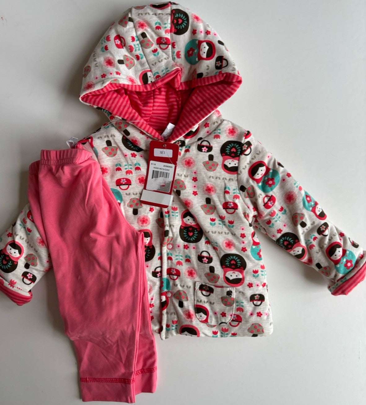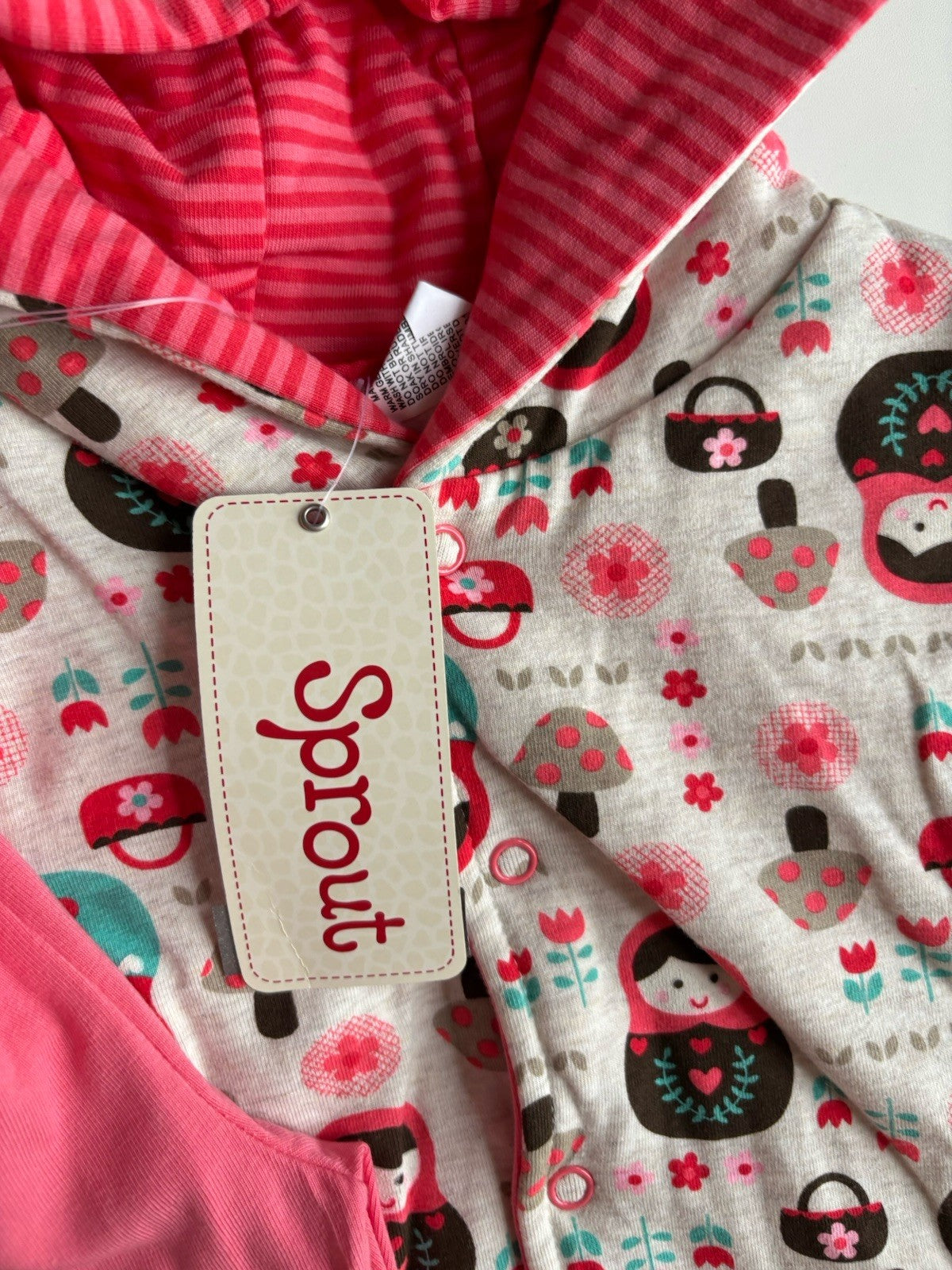 Sprout baby girl size 6-12 months pink leggings babushka jacket set, BNWT