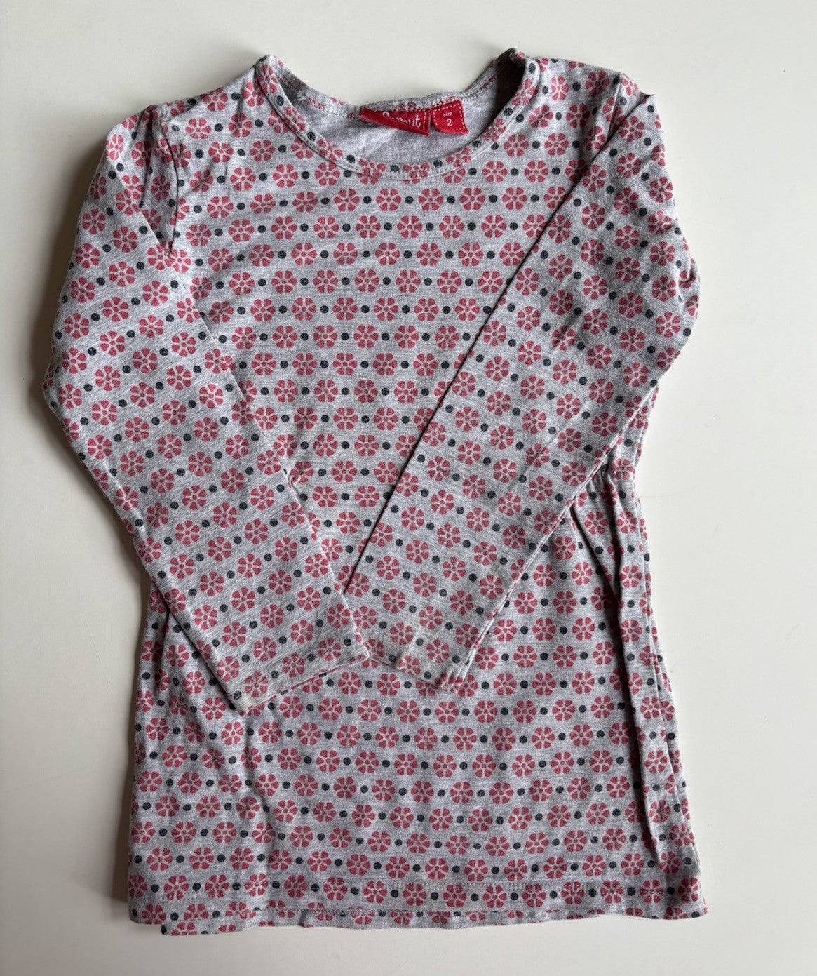 Sprout baby girl toddler size 2 grey pink floral long sleeve dress, VG