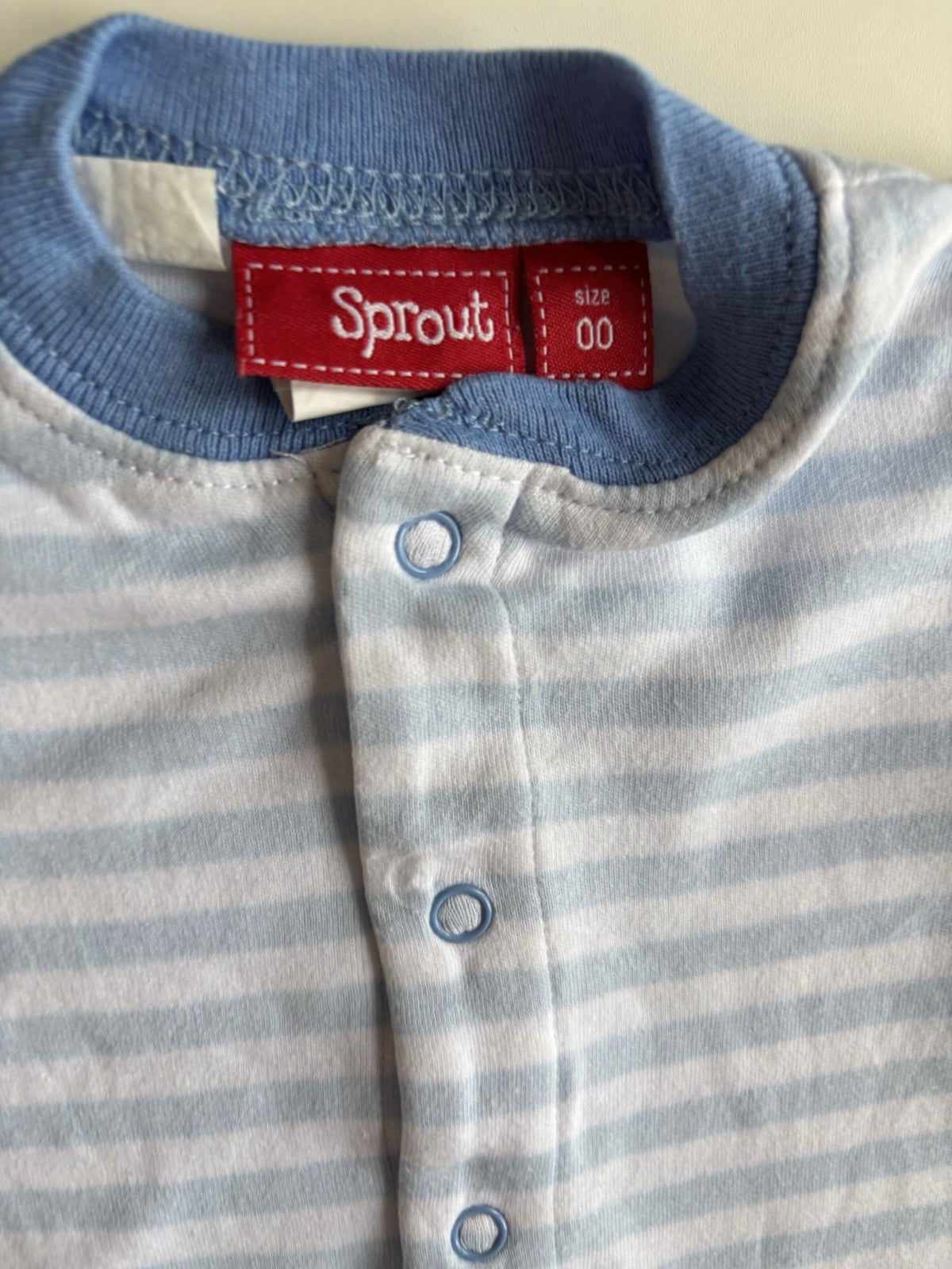 Sprout baby size 3-6 months blue white stripe romper, VGUC