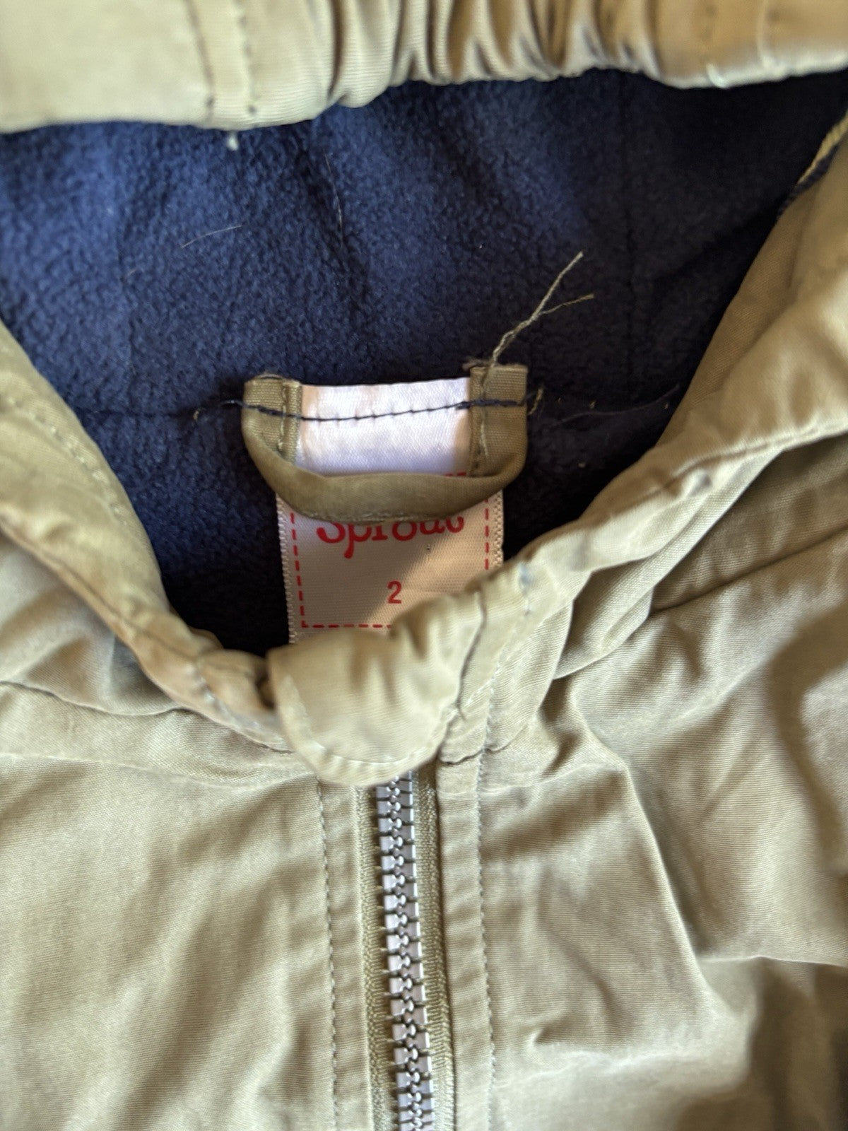 Sprout kids boys toddler size 2 olive green hooded jacket coat, VGUC