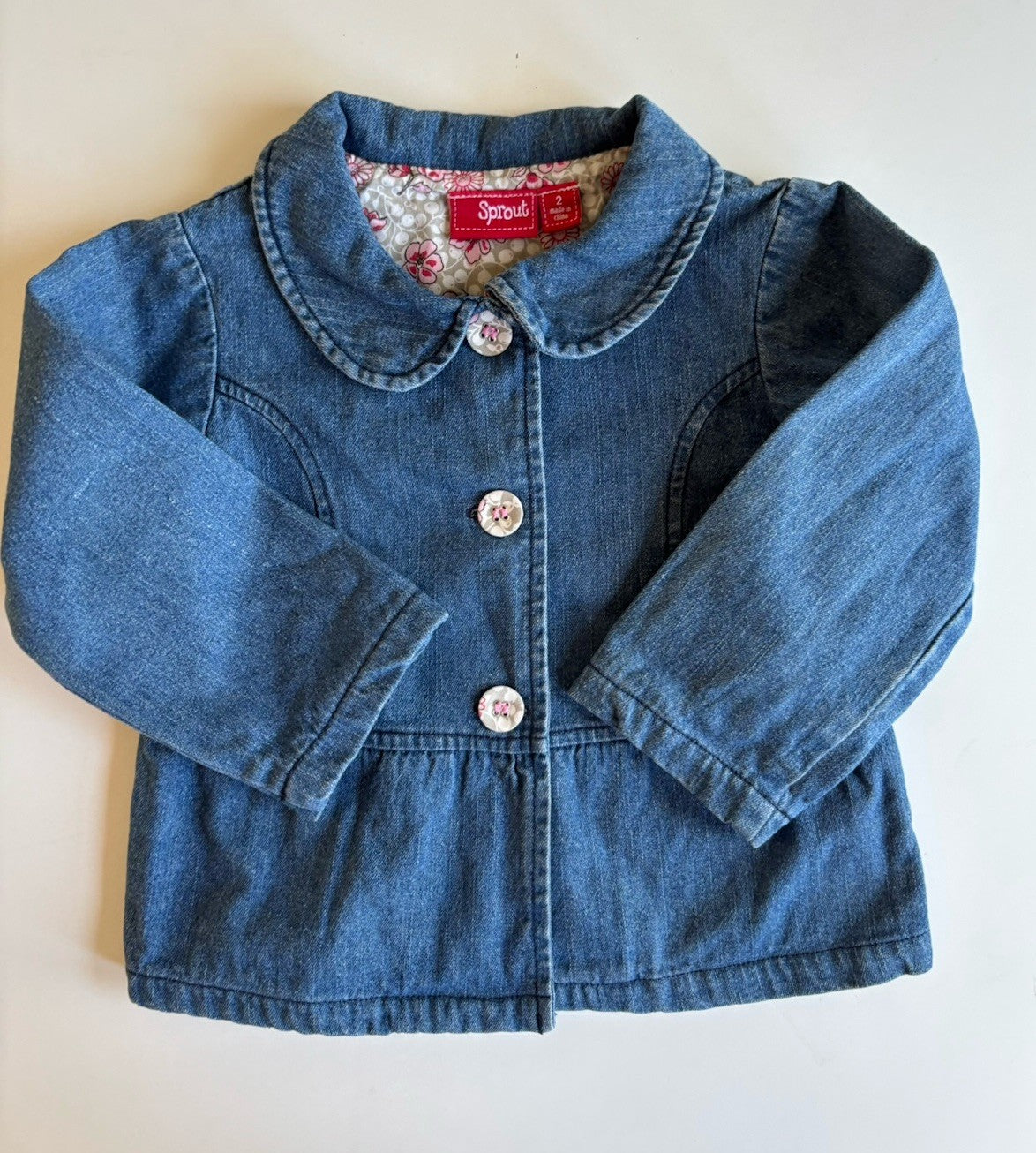 Sprout kids girls toddler size 2 blue denim button up jacket, VGUC