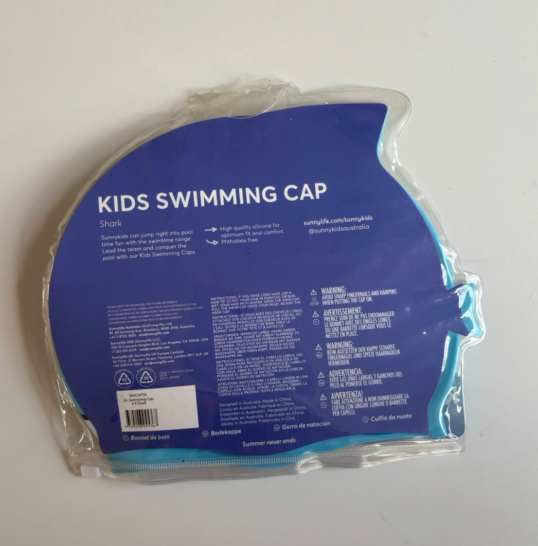 Sunnylife kids swimming cap blue shark, BNWT