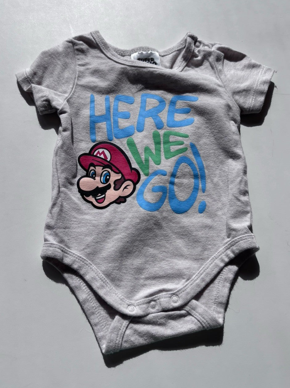 Super Mario baby size 0-3 months grey t-shirt bodysuit top, VGUC
